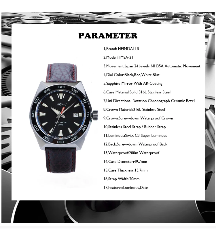 3,Movement:Japan 24 Jewels NH35A Automatic Movement