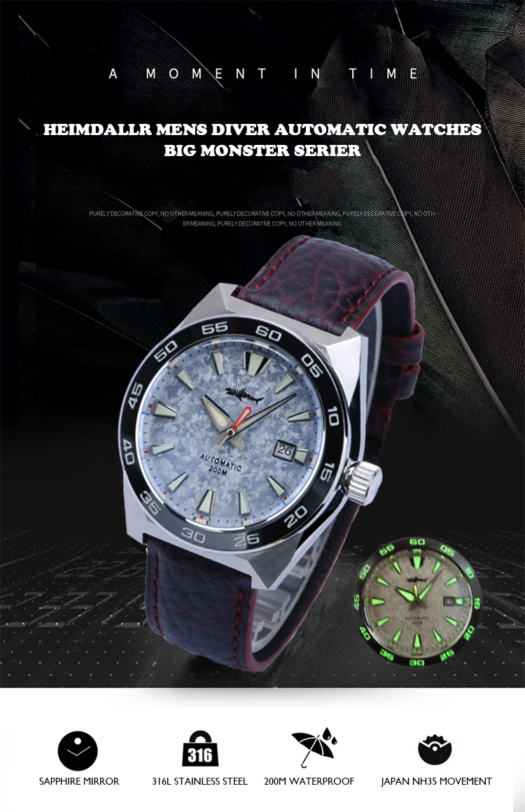 Heimdallr Mens Diver Watches Luxury Automatic Watch Mechanical Wristwatch 200M Waterproof Luminous NH35 Sapphire Ceramic Bezel