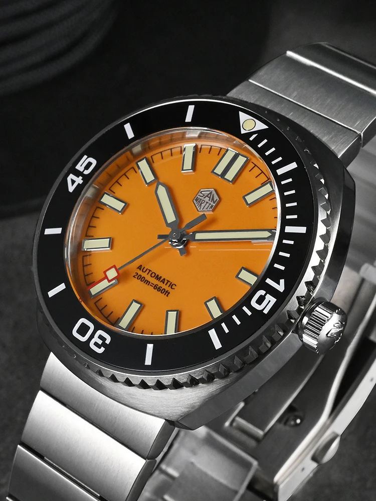 Enamel Orange Dial, 316L Stainless Steel Bracelet