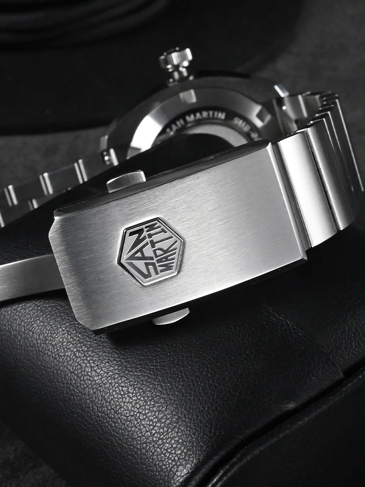 Strap: 316L Solid Stainless Steel Bracelet/ Fluorine Rubber Strap, With 3D San Martin Logo, Width 20 *18mm