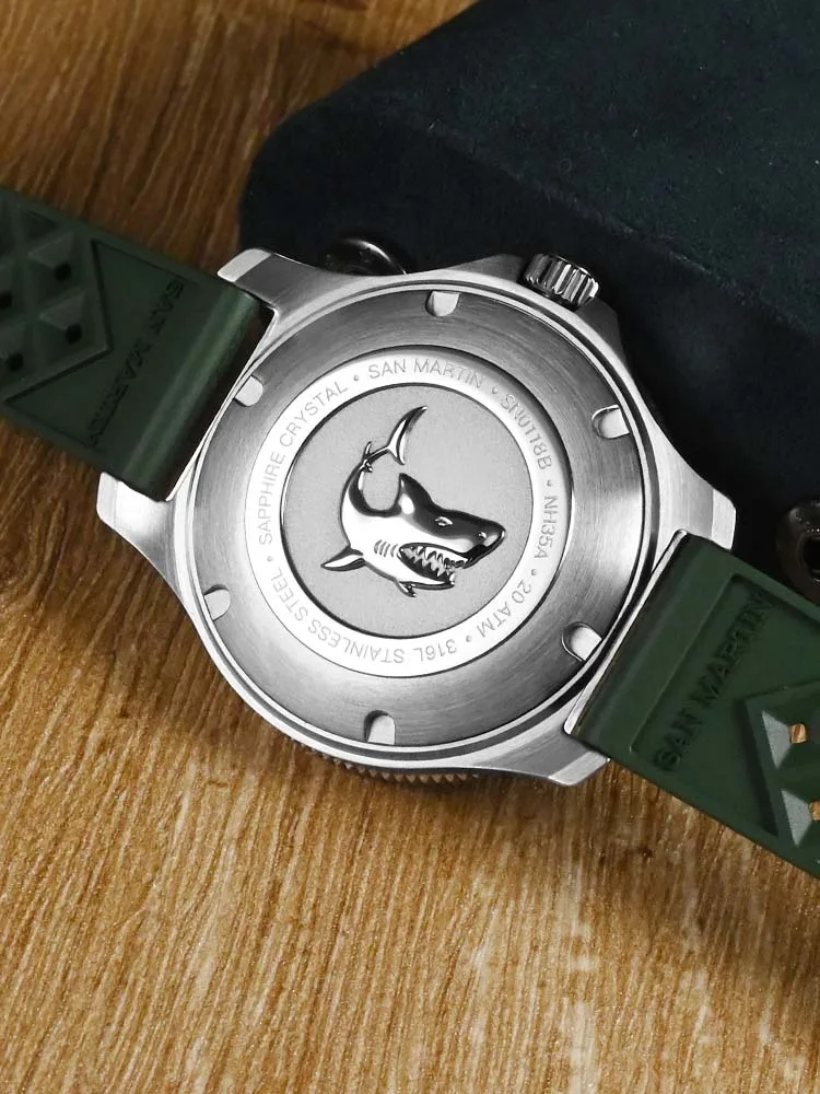 Case Back: Screw-down Case Back, Stamping Process 3D Shark Logo
