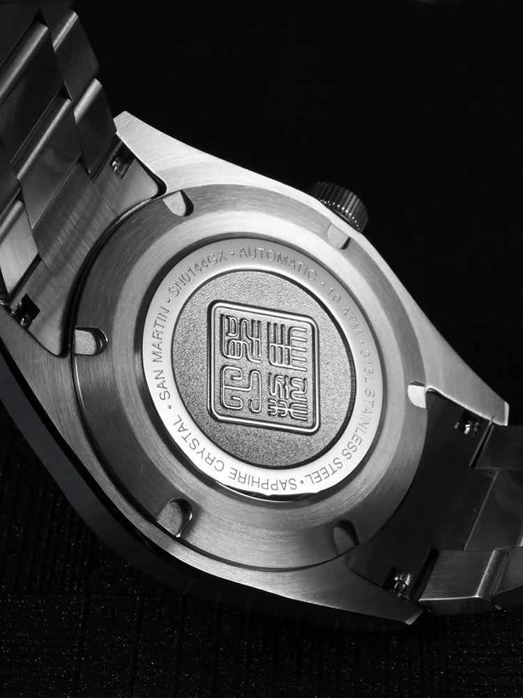 Screw-down Case Back, Engraved with Chinese stamp "Made in San Martin", inspired by the stamp on the bottom of Chinese porcelain "JianZhan".