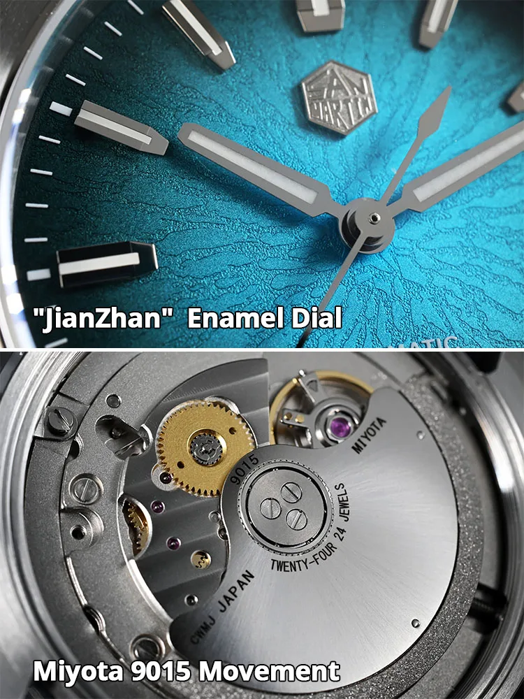 The effect of our "Jian Zhan" dial is similar to the Enamel process. A 3D pattern is made on the bottom, and then the corresponding dial color is made. Finally, a transparent protective film is made on the outside. The overall texture is similar to the Enamel process, and it will present different visual effects from different angles. It looks like a 3D effect, but it is actually flat.