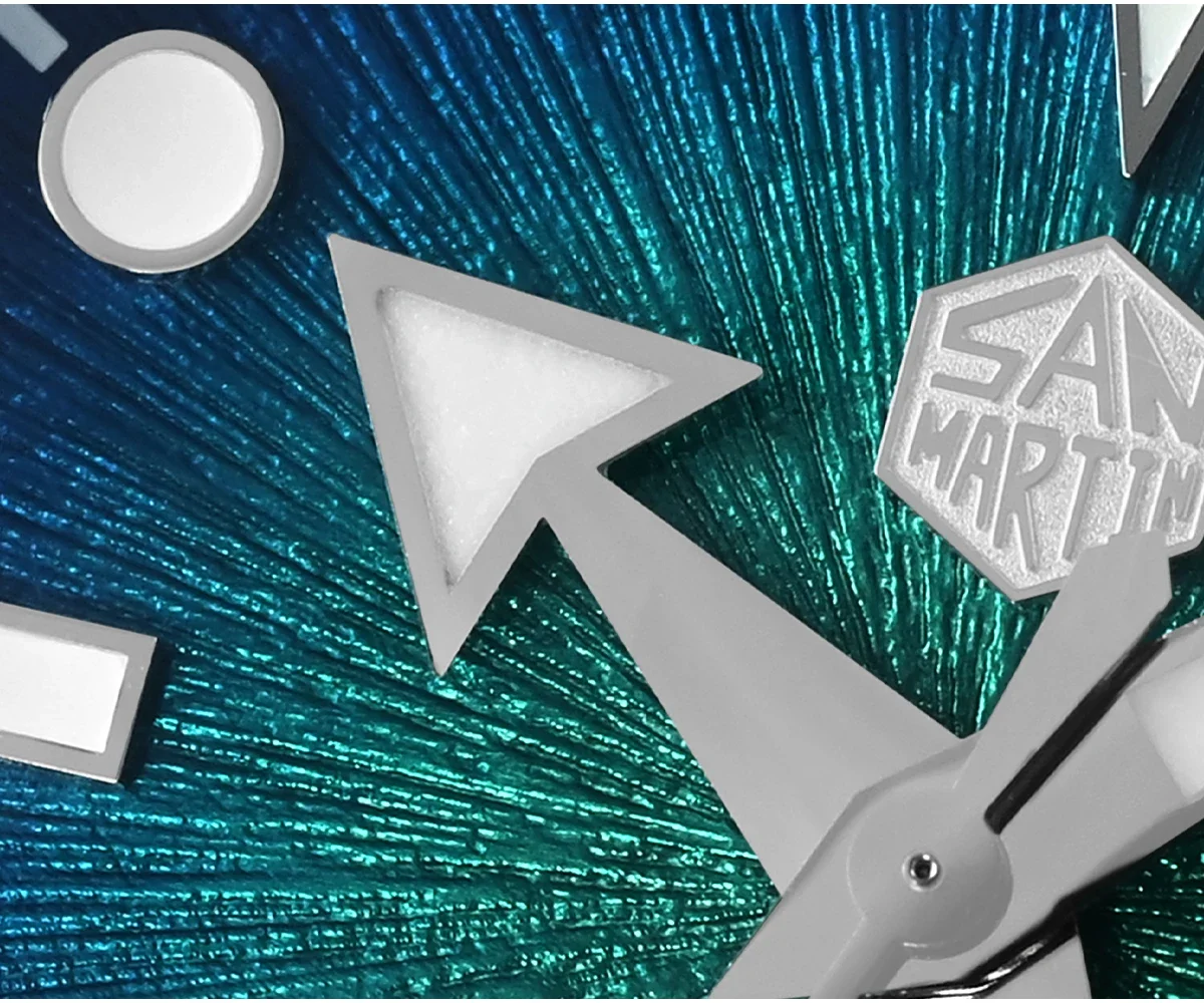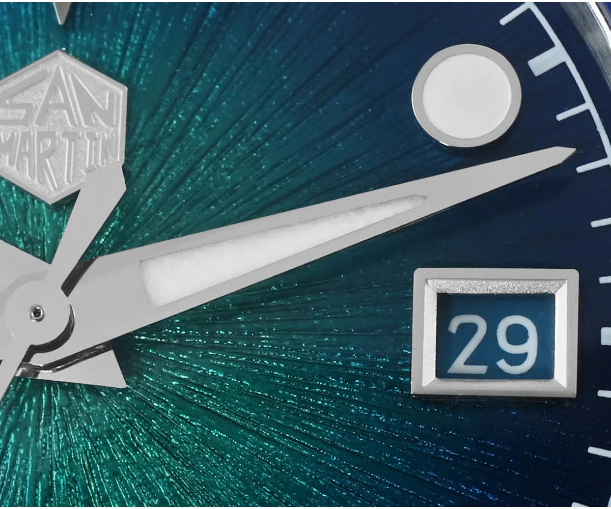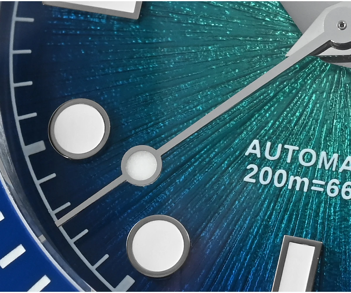 Dial Color: Enamel Gradient Sunburst Jianzhan Textured Dial, Sunburst Gray, Sunburst Green, Sunburst Blue, Applied Hexagon Logo & Applied Indices