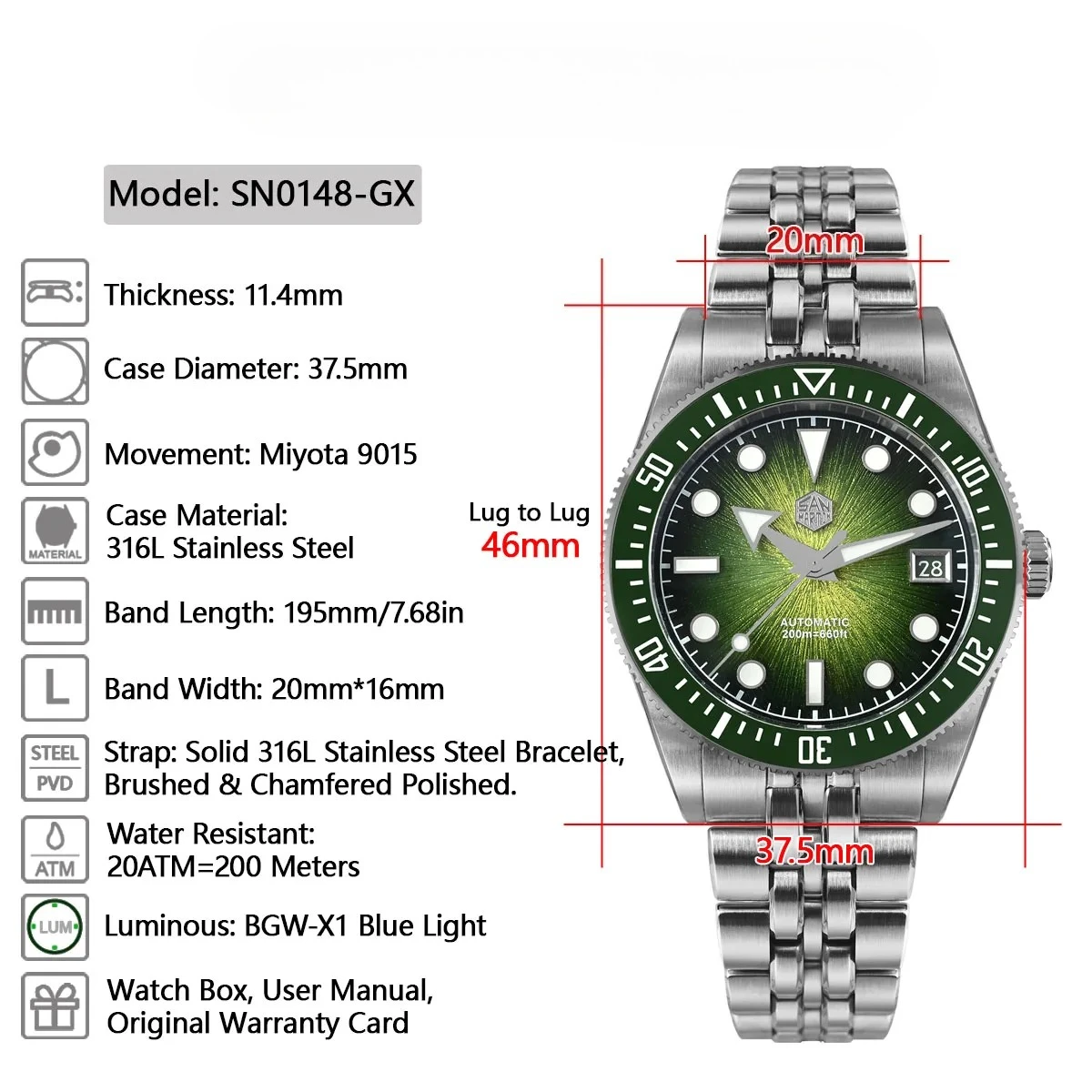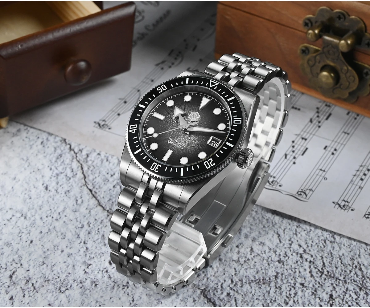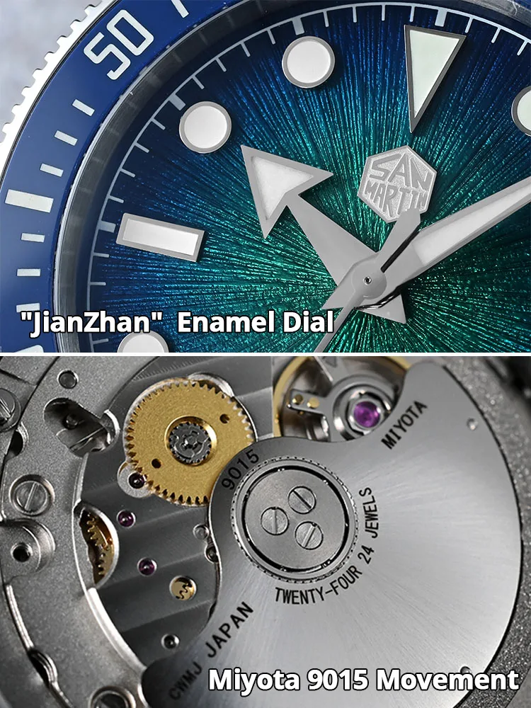 New 37.5mm Miyota 9015 Enamel Sunburst Jianzhan Textured Dial SN0148-GX Luxury Diver Watch