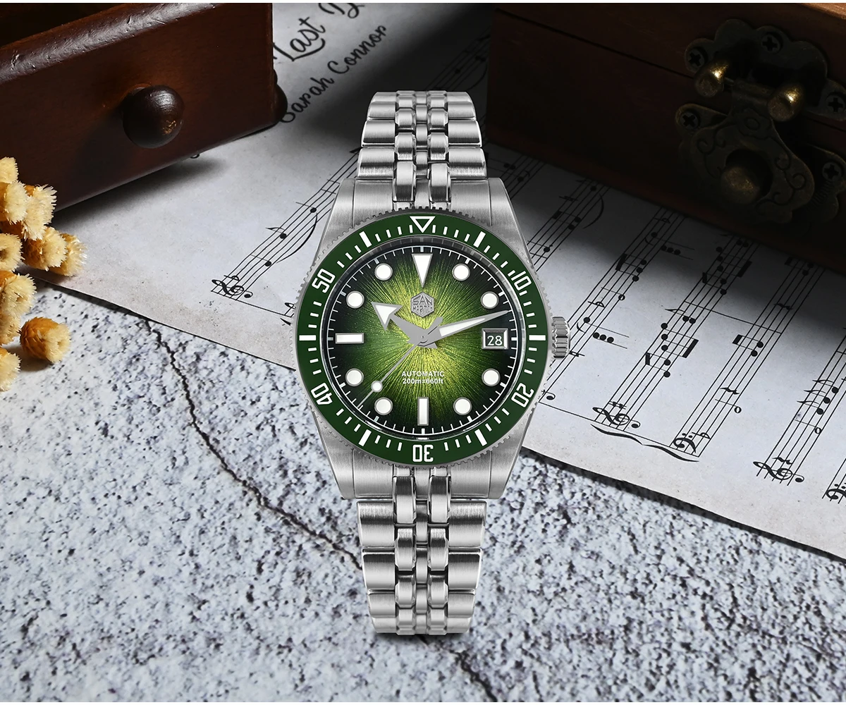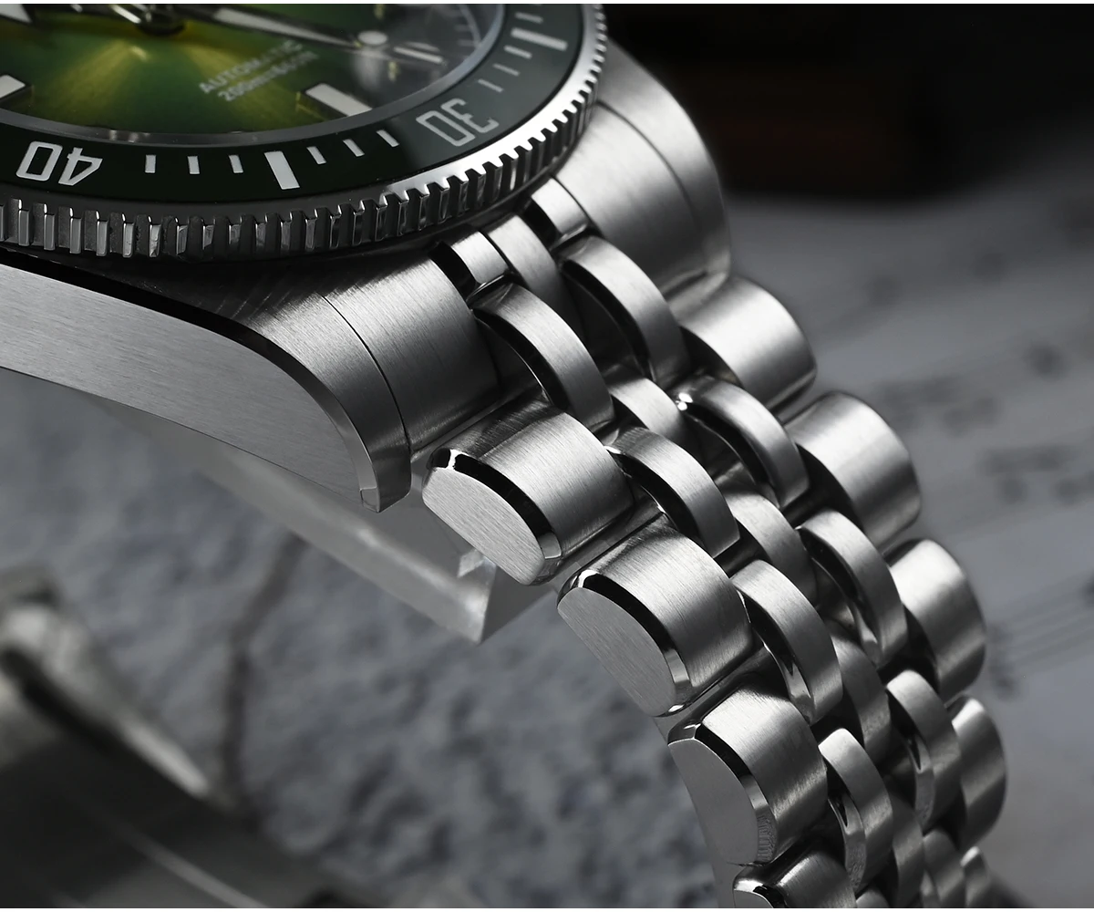 Enamel Sunburst Green Gradient Jianzhan Textured Dial, With Green Ceramic Bezel Insert