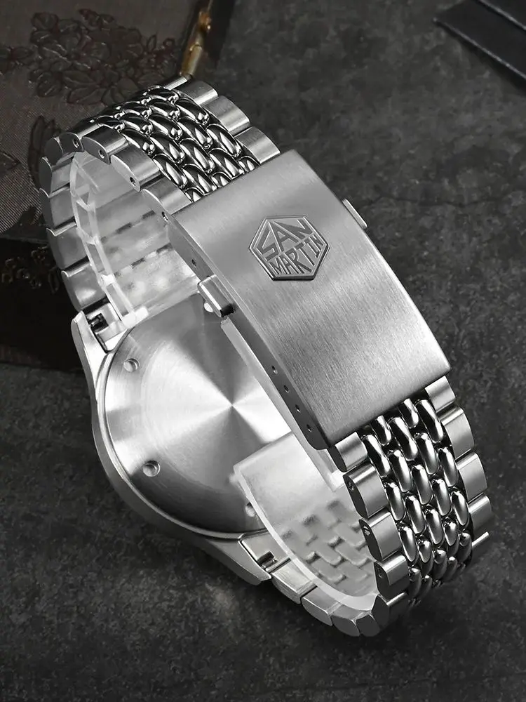 7 Links 316L Solid Stainless Steel Bracelet: Size 20x18mm, With New Square 4-Hole Adjustable Folding Clasp With Safety, With San Martin Hexagon Logo