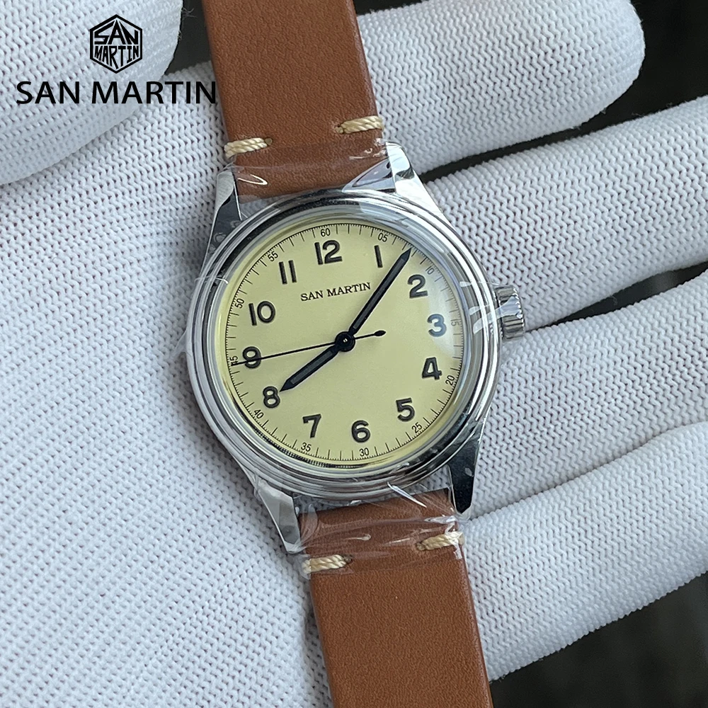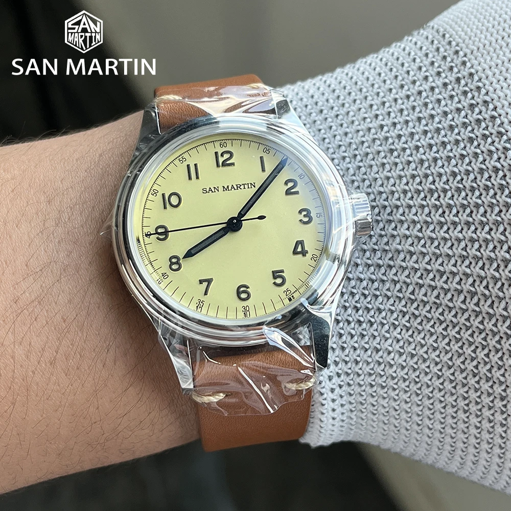 New 38.5mm Pilot Military Vintage Style NH35 10ATM With Baked Varnish Blue Hands