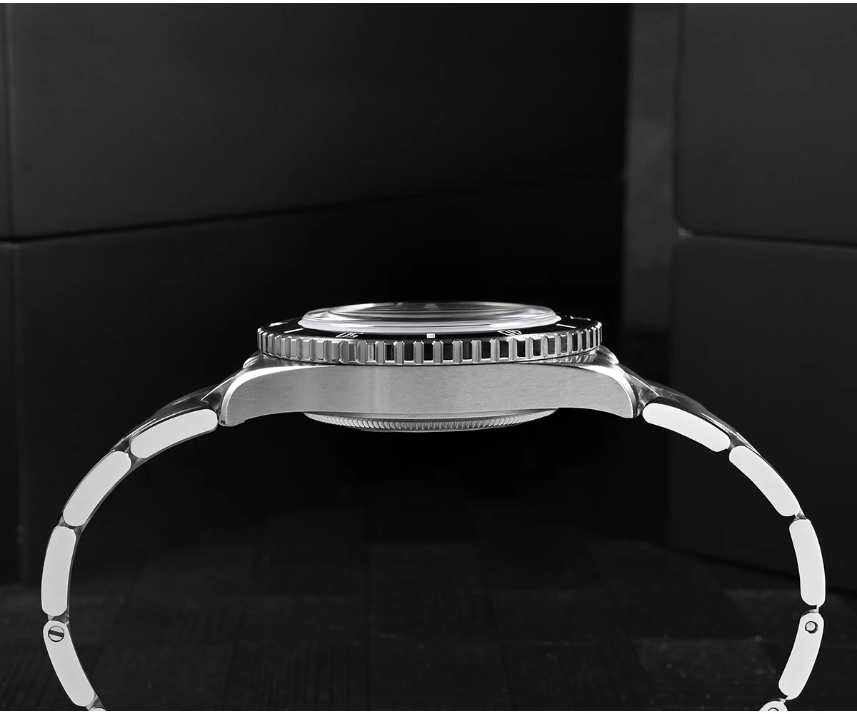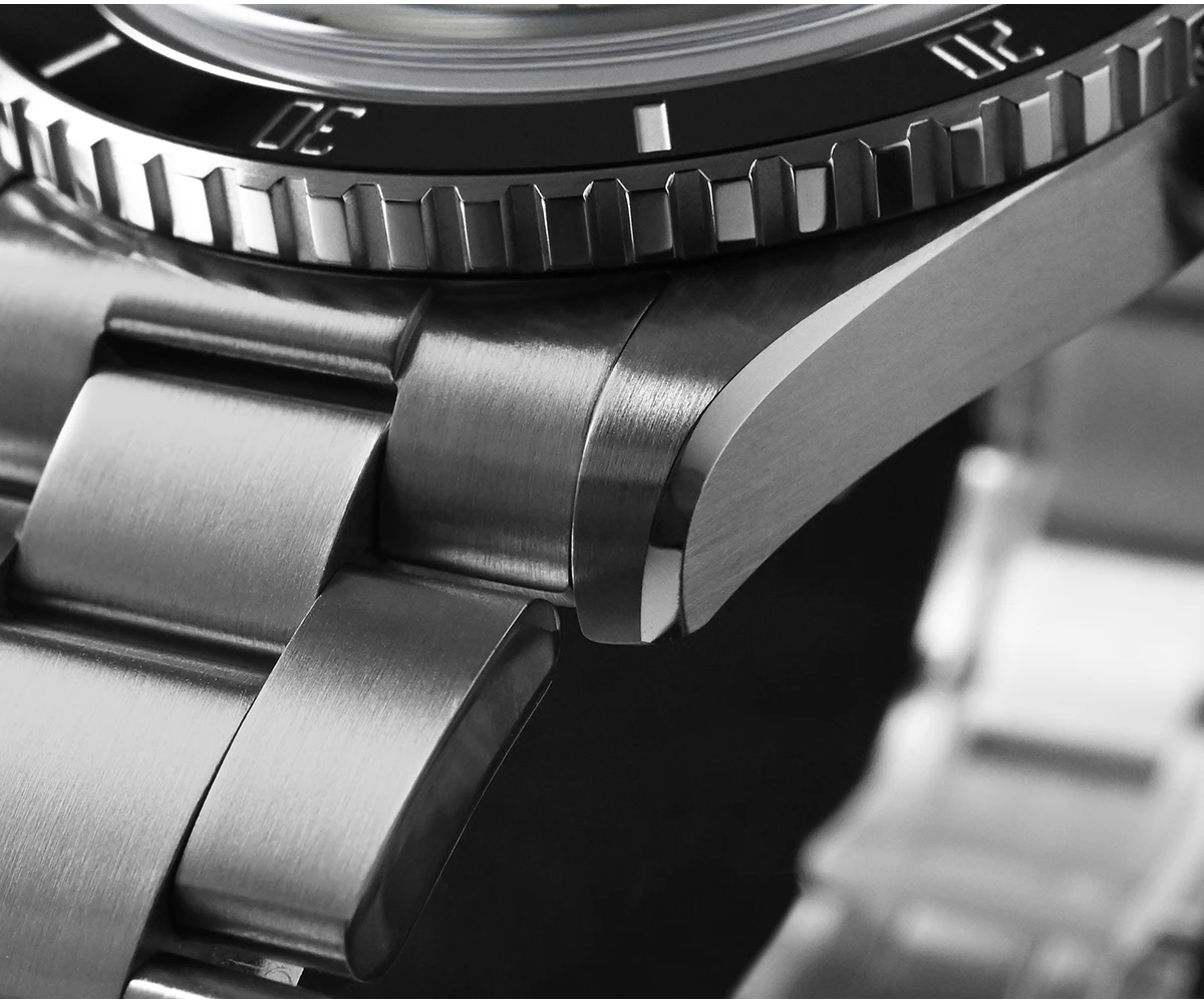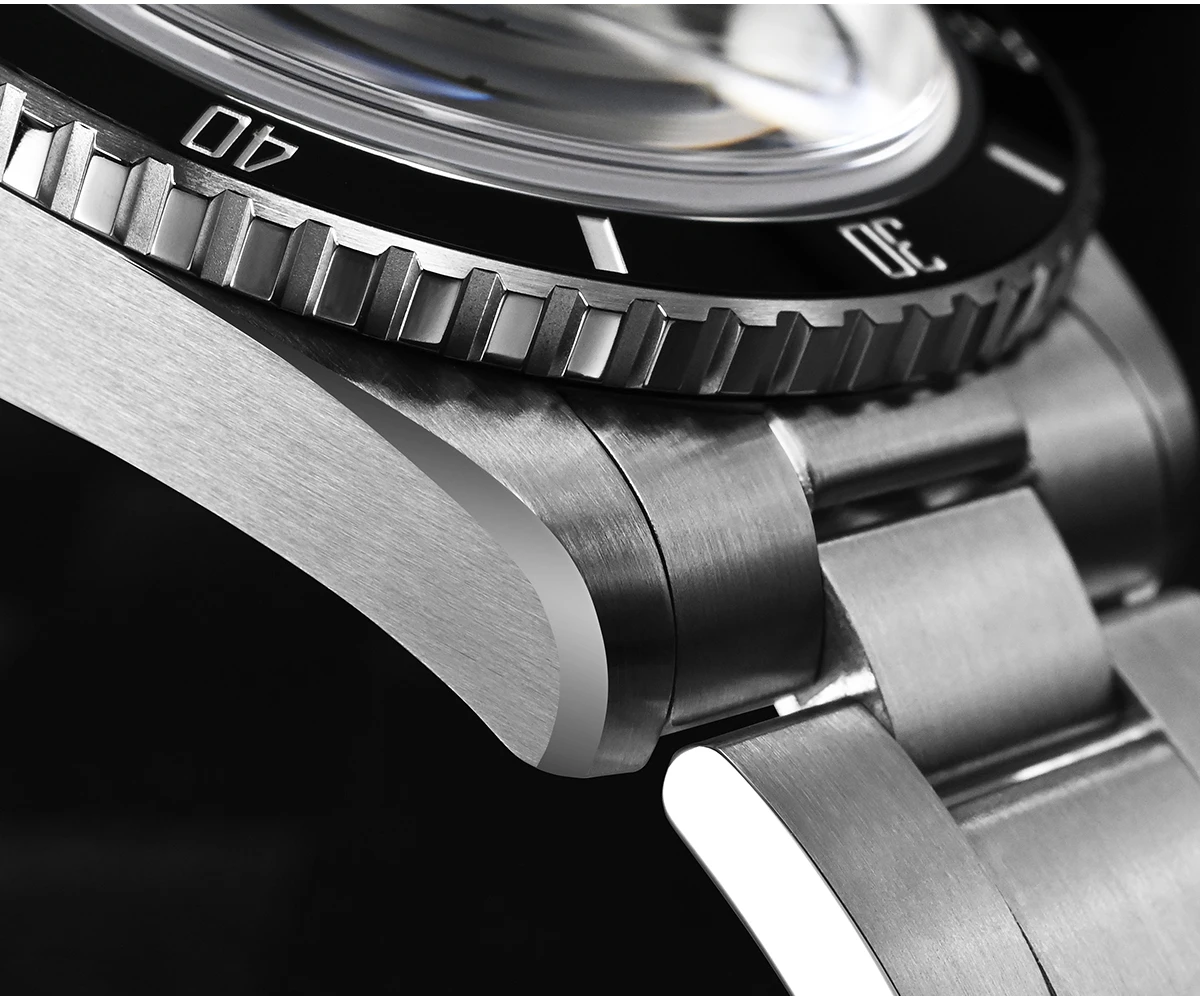 Bezel: The Bezel structure is upgraded, the rotating sound is more crisp, and the damping feeling is clearer. (different from the traditional Click Spring structure) 120 Clicks Ceramic Bezel, 12 O’clock Luminous Markers