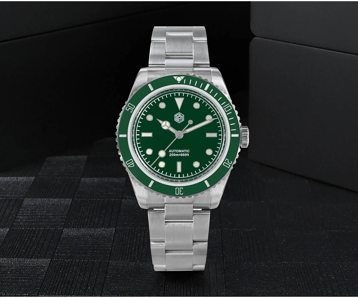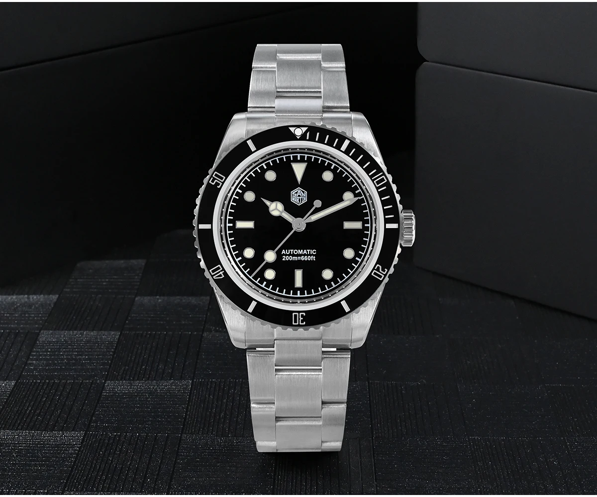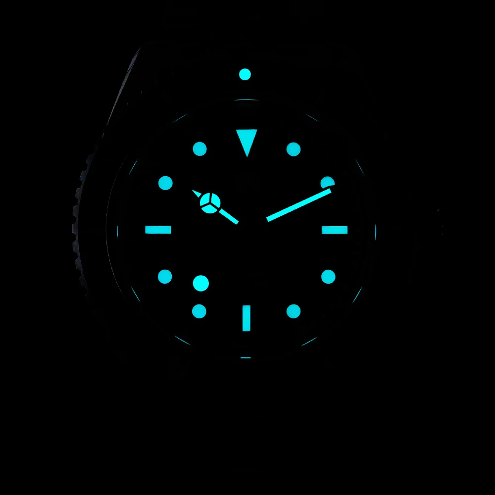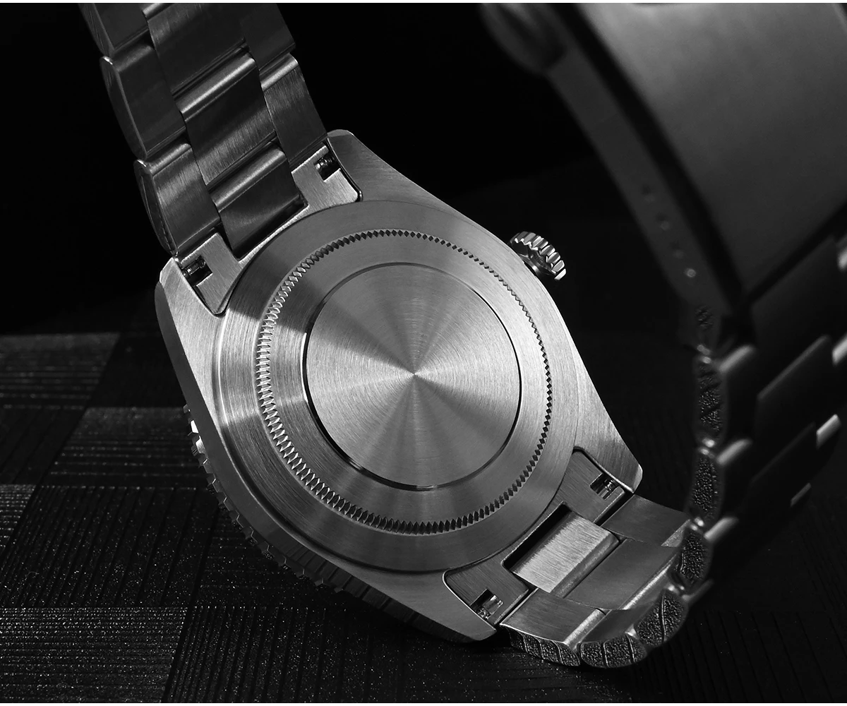 Bezel: The Bezel structure is upgraded, the rotating sound is more crisp, and the damping feeling is clearer. (different from the traditional Click Spring structure) 120 Clicks Ceramic Bezel, 12 O’clock Luminous Markers