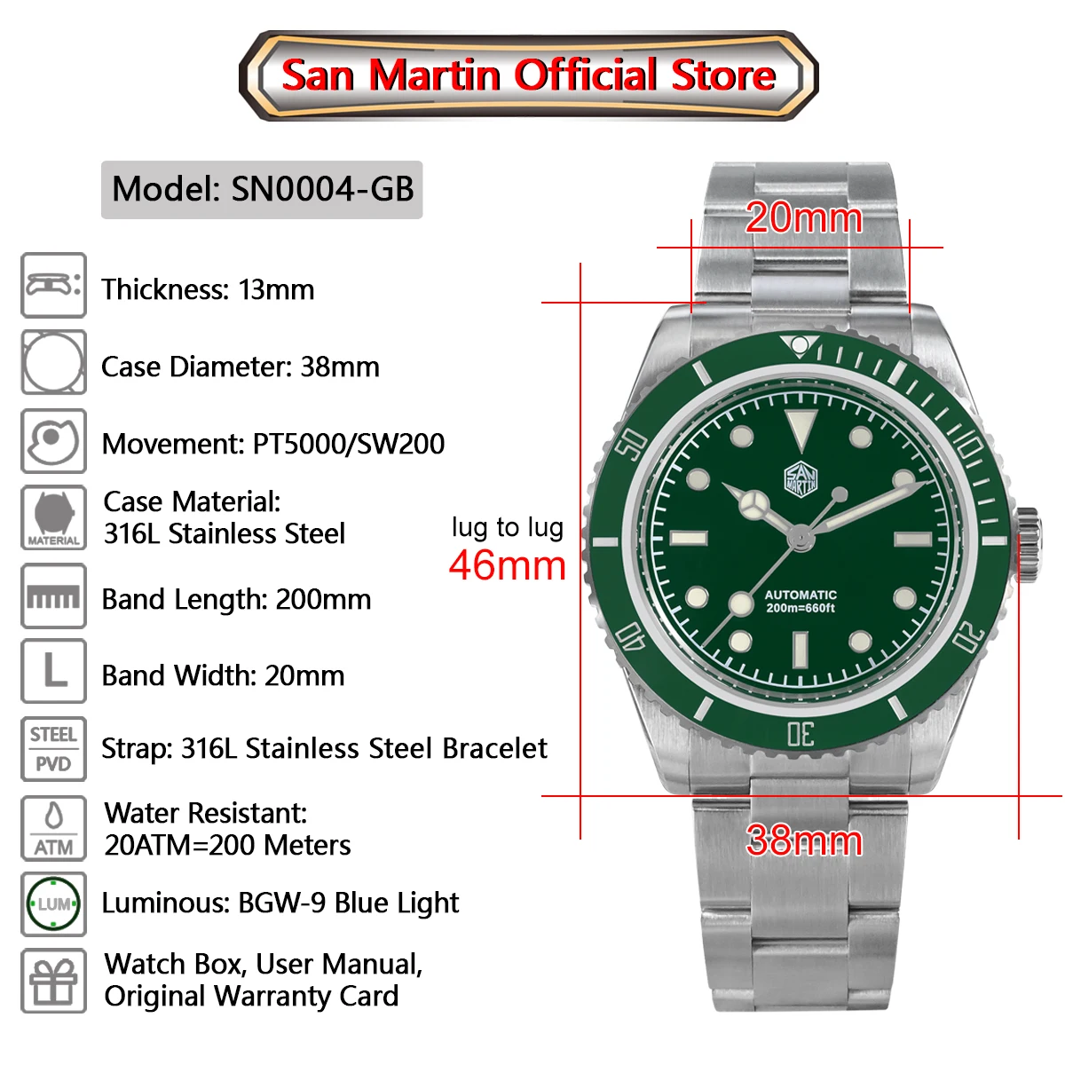 New Upgraded Version 38mm Vintage 6200 PT5000 SW200 Men Diver Watch