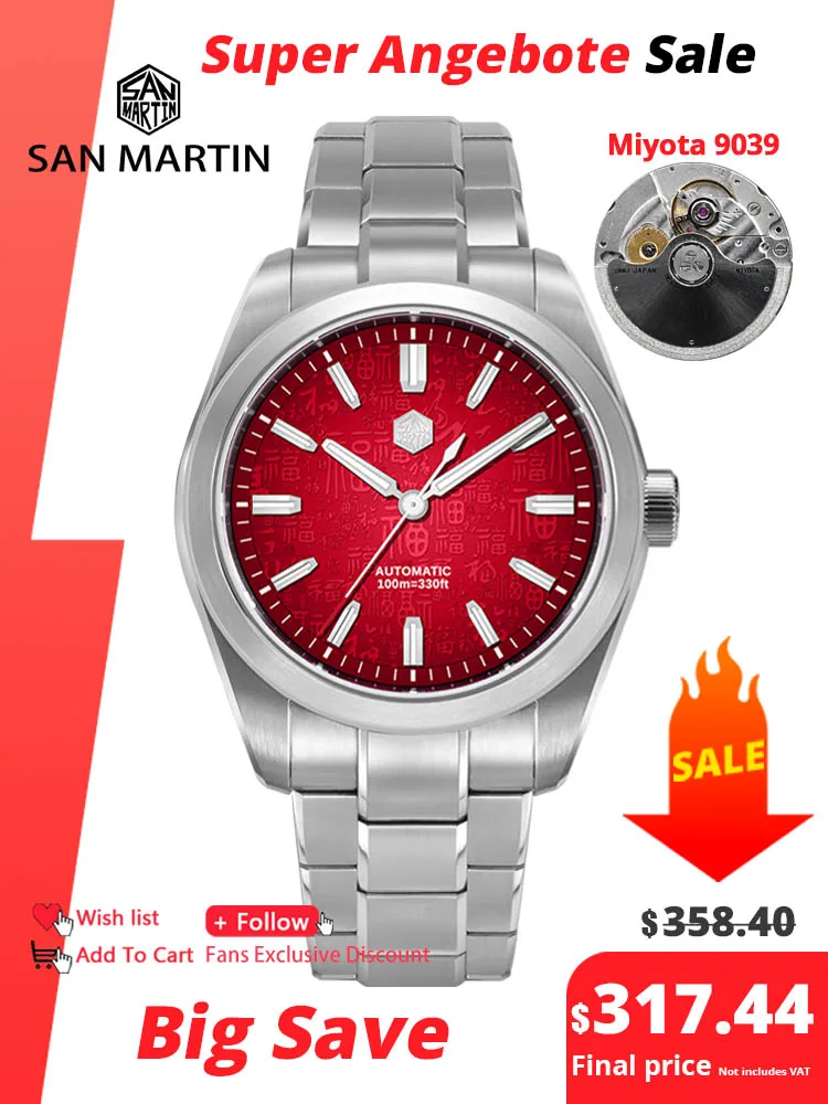 San Martin 39mm Chinese Style 3D “Fu” Hundred Blessings Dial Miyota 9039 Men Automatic Mechanical Watch Original Design SN0144