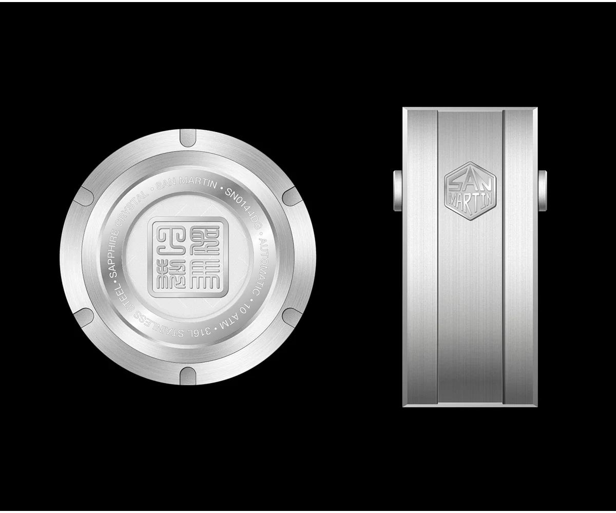 Screw-down Case Back, Engraved with Chinese stamp "Made in San Martin", inspired by the stamp on the bottom of Chinese porcelain "JianZhan".