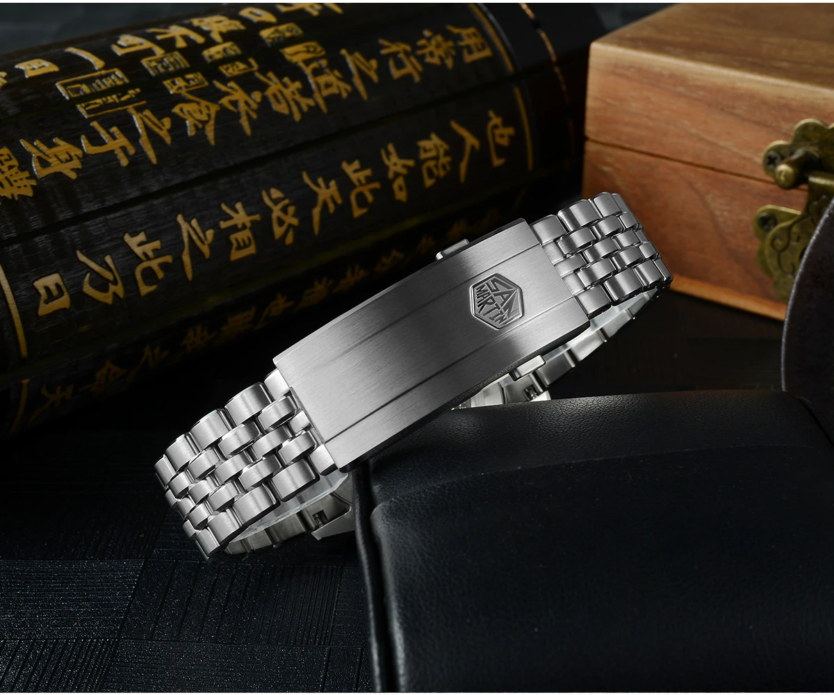 316L Solid Stainless Steel 3 Links O Bracelet, Brushed Process, The Edges are Polished and Chamfered on Both Sides, On The Fly Adjustable Clasp,With San Martin Hexagon Logo