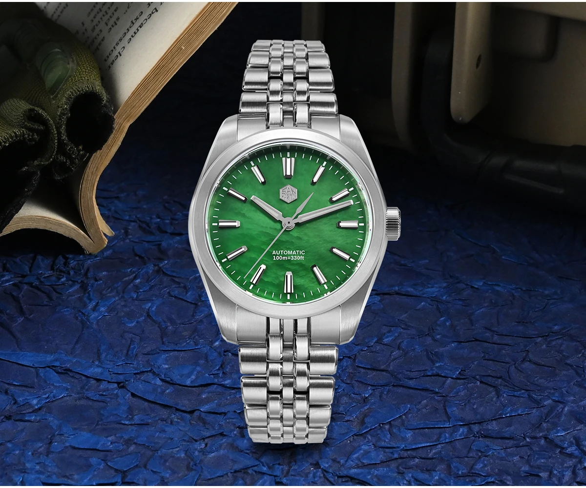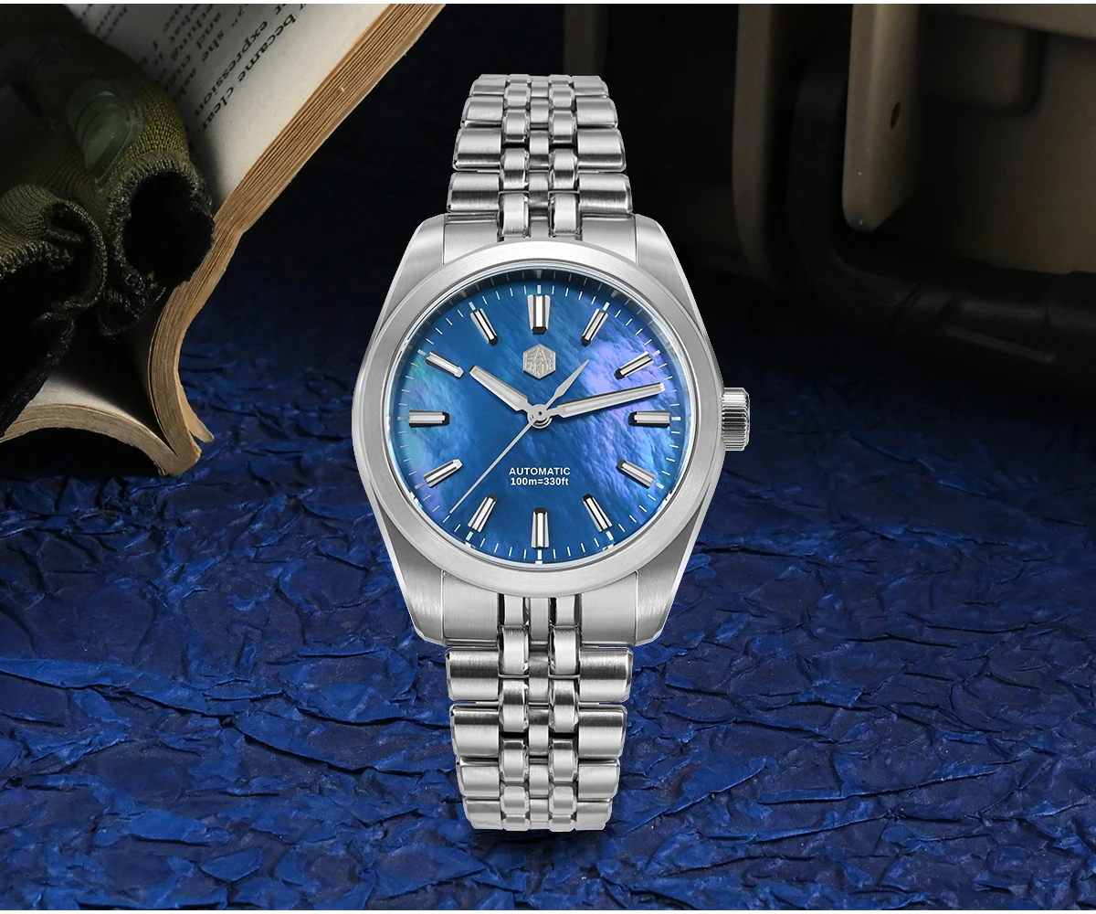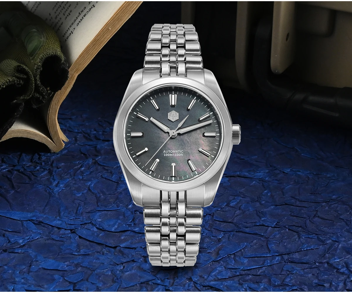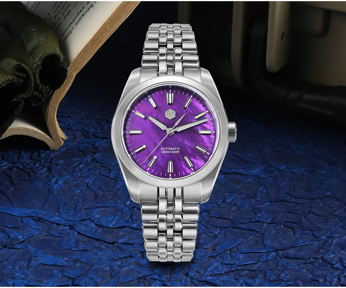 Natural Mother Of Pearl (MOP) Dial, Under Different Light Conditions, It Presents Different Colorful Colors. The Pattern Of Each Dial Is Naturally Formed and Unique, Cannot Be Copied.