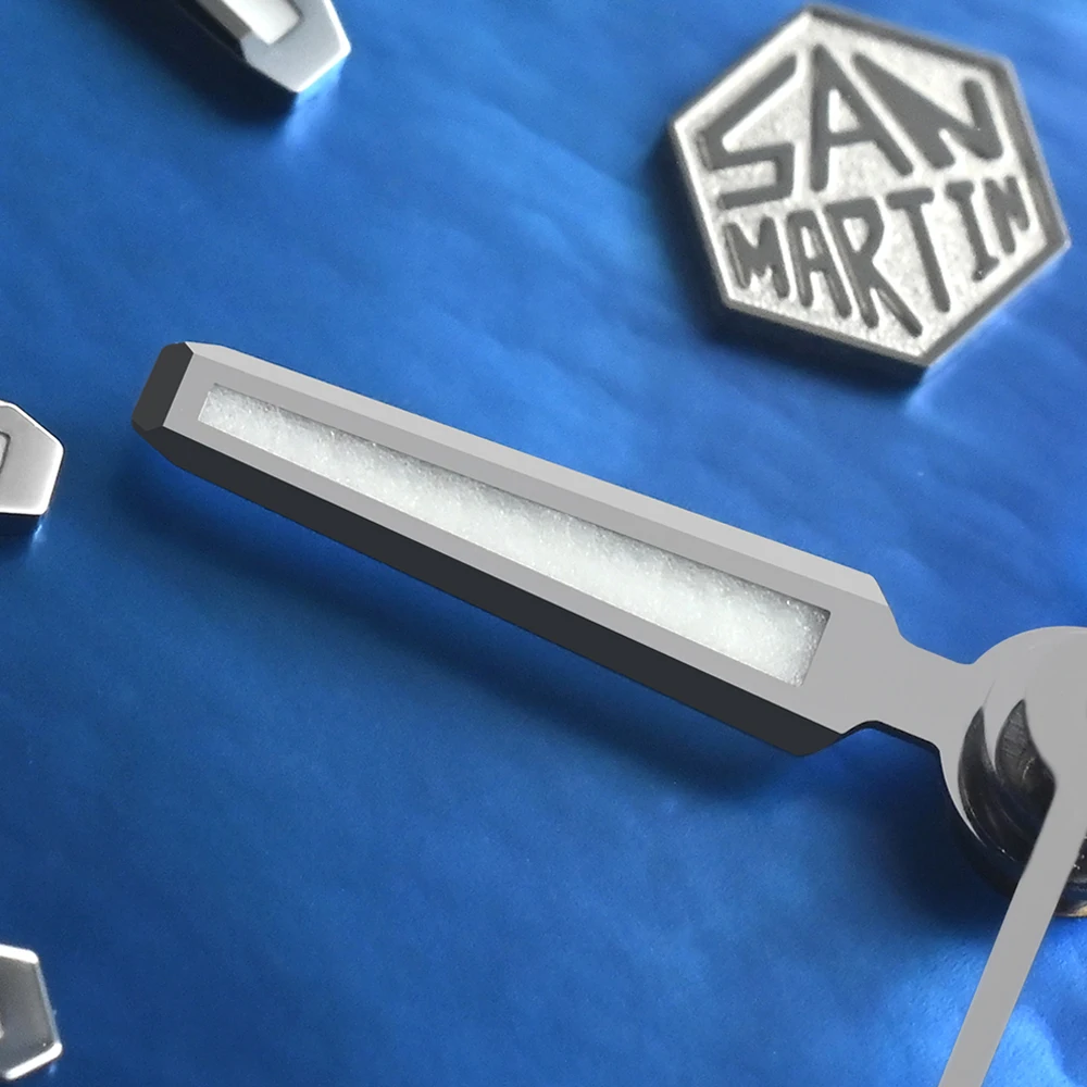Case Back: Screw-down Case Back, Engraved with Chinese stamp "Made in San Martin", inspired by the stamp on the bottom of Chinese porcelain "JianZhan".