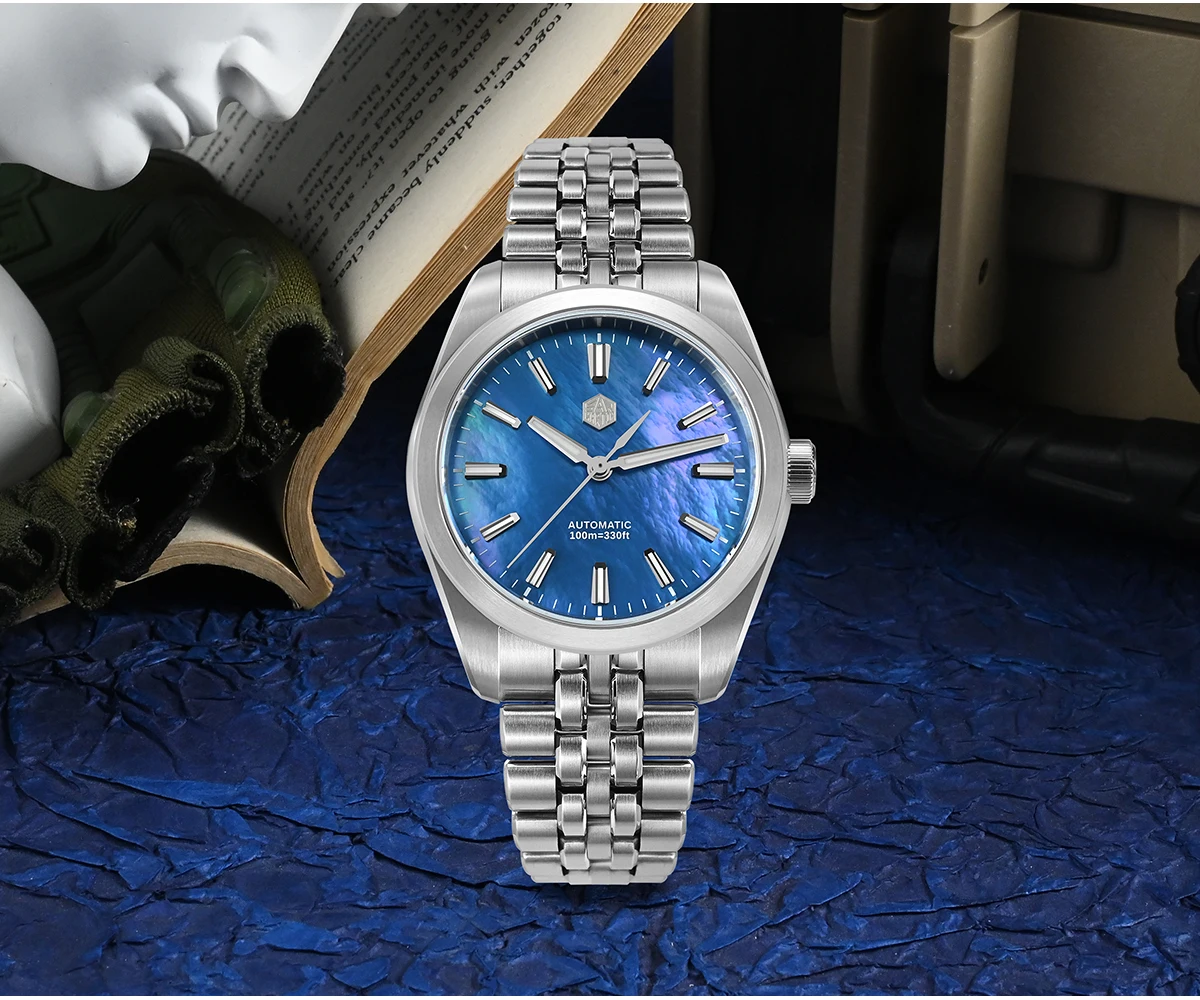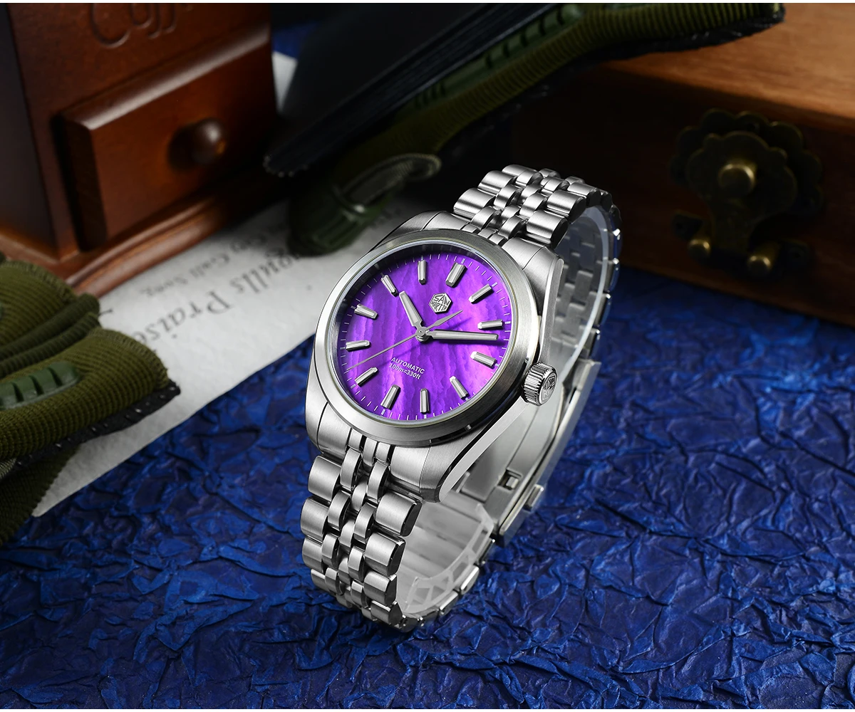 Natural Mother Of Pearl (MOP) Dial, Under Different Light Conditions, It Presents Different Colorful Colors. The Pattern Of Each Dial Is Naturally Formed and Unique, Cannot Be Copied.