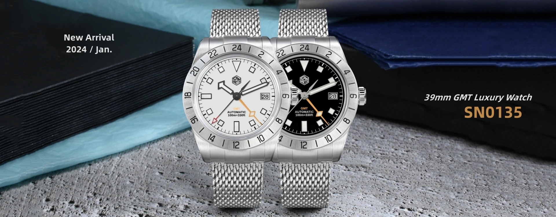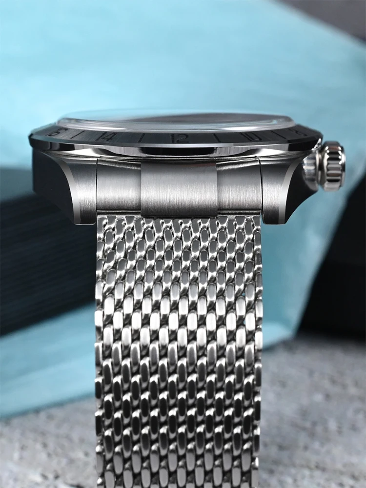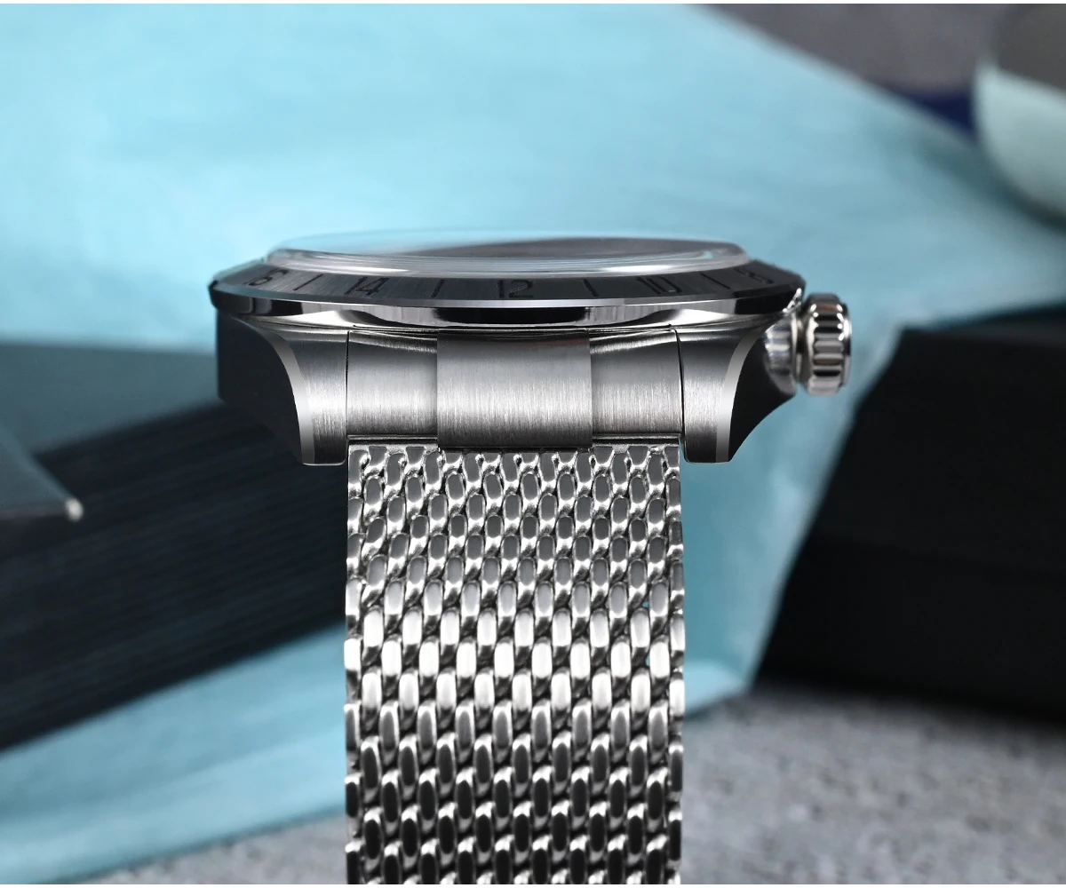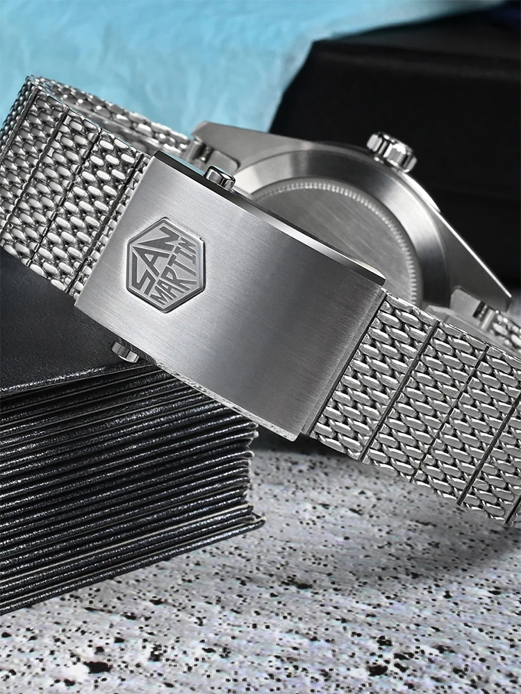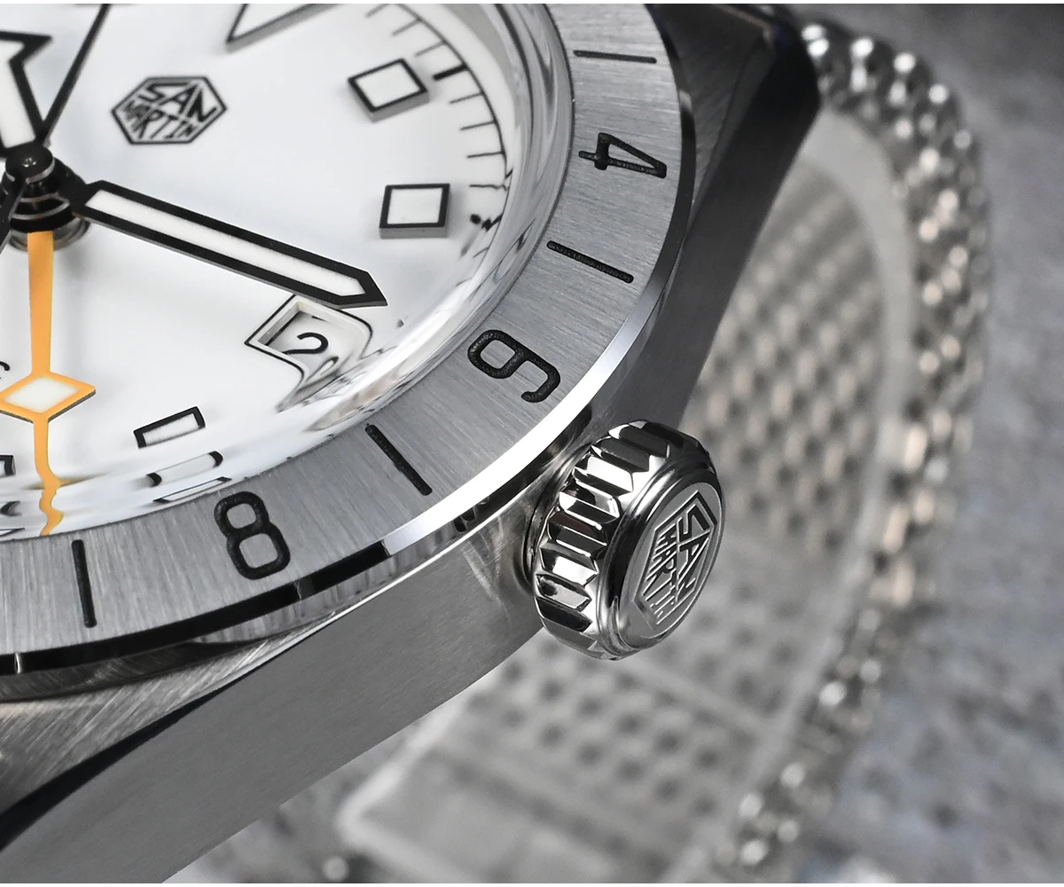 San Martin 39mm NH34 GMT Automatic Watch Luxury Wrist Clock Mesh Bracelet Quick Adjust Clasp 100m Waterproof Sapphire SN0135