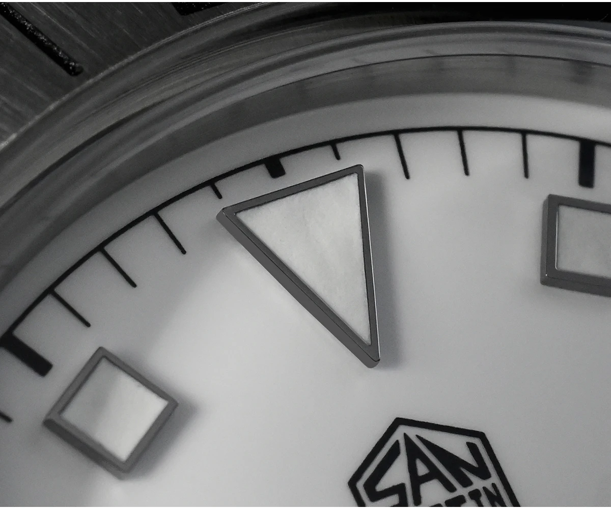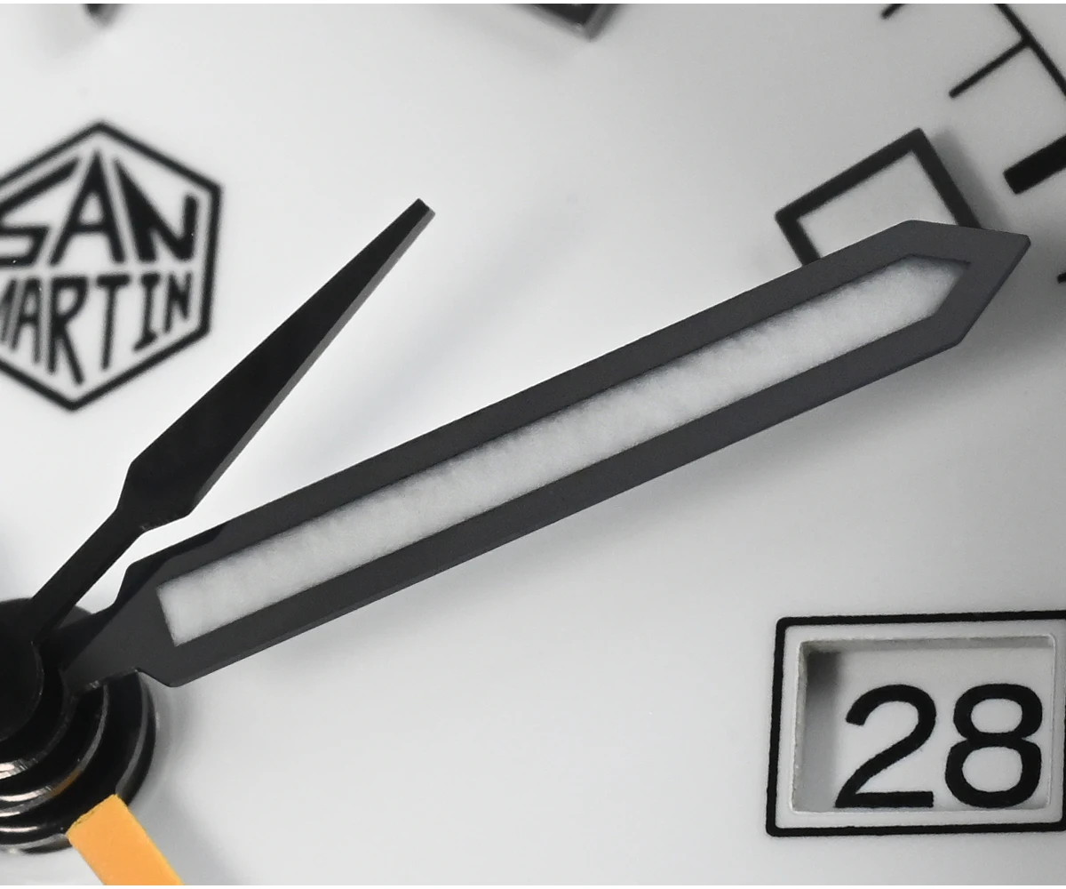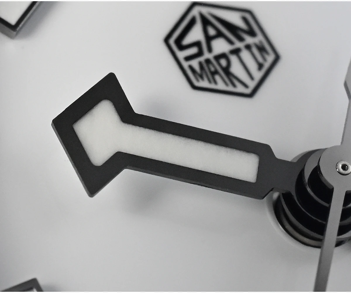 Dial: Enamel White / Black Color, With Printed Hexagon San Martin Logo And Applied Indices