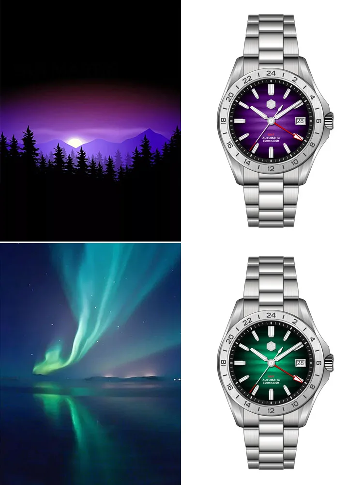The Gradient Purple dial is inspired by the Purple sunset in the evening.