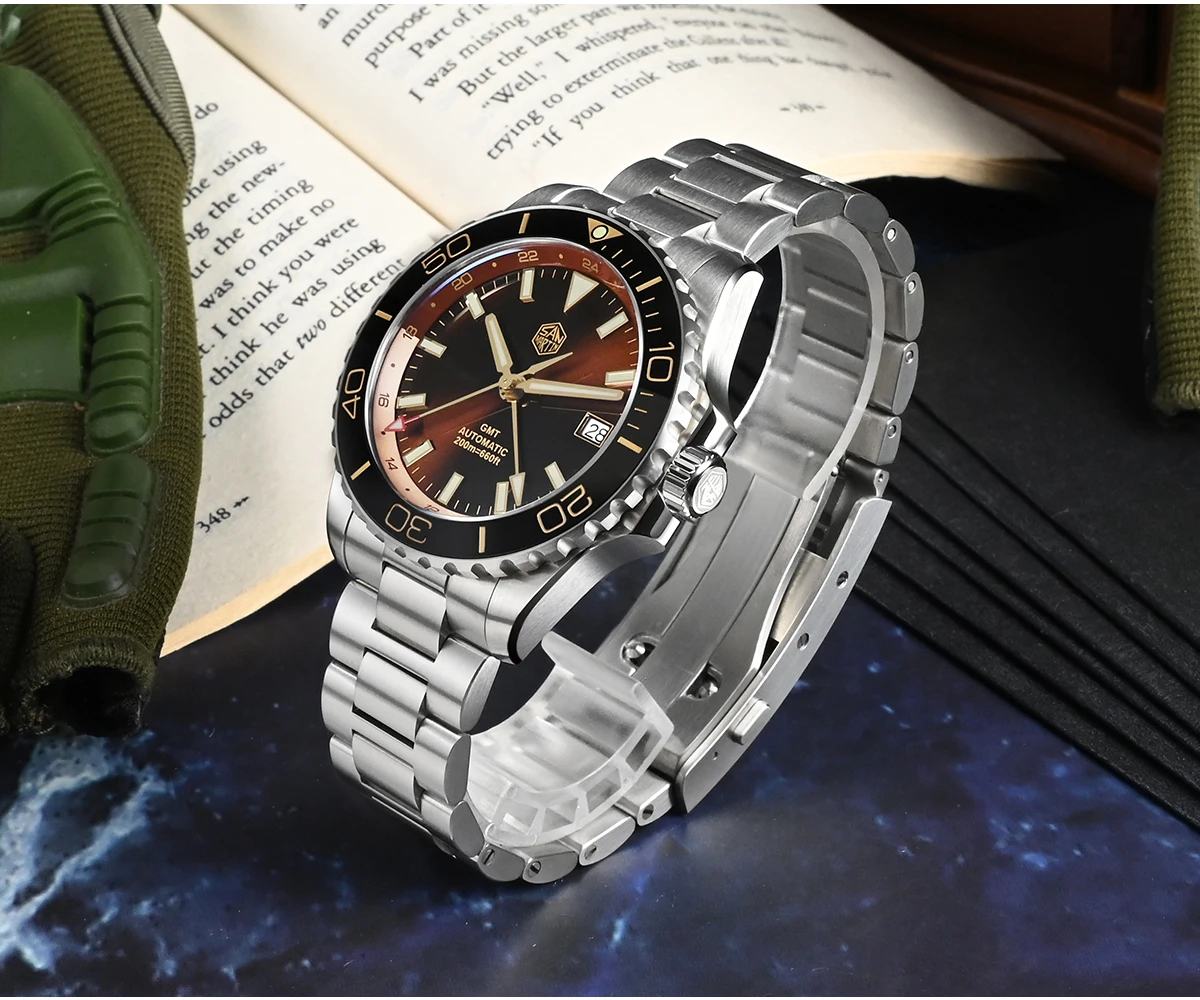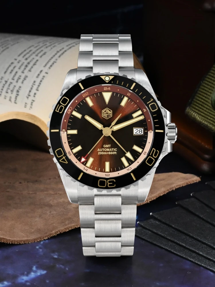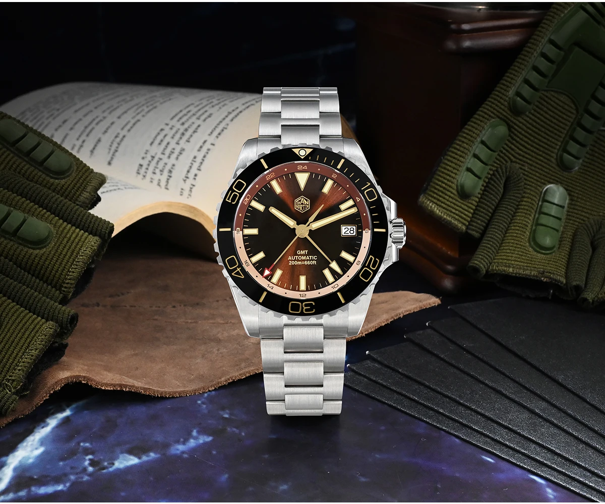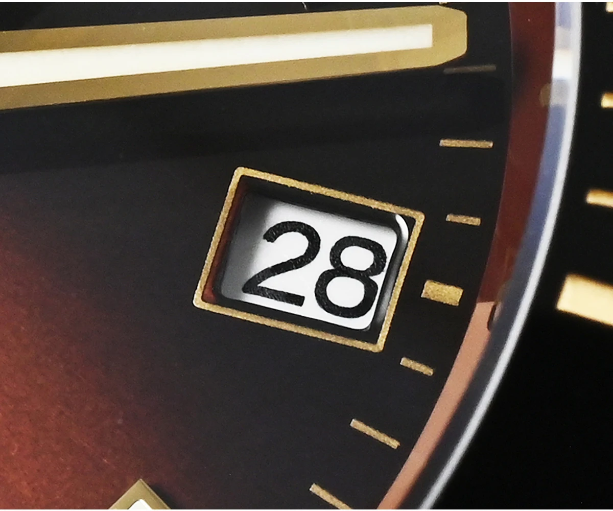 Dial: Enamel Sunray Brown Color, With Printed Hexagon San Martin Logo And Applied Indices, 3H Date Window