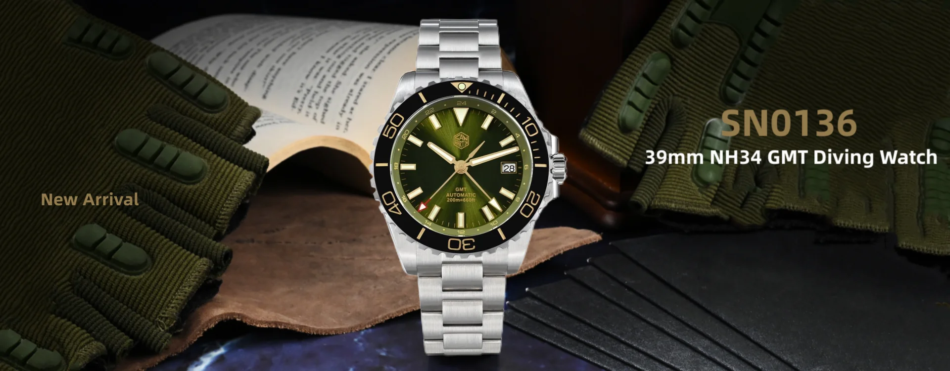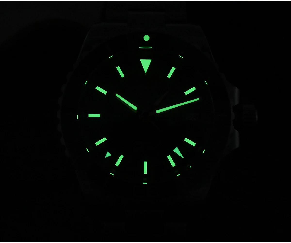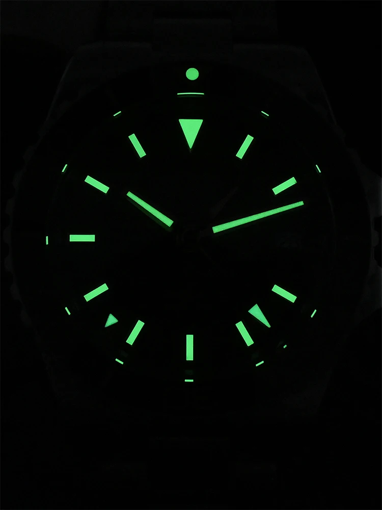 Luminous Effect: Retro SLN C3 Green Light, On Bezel 12H Round Dot Position, Hands And Dial Indices