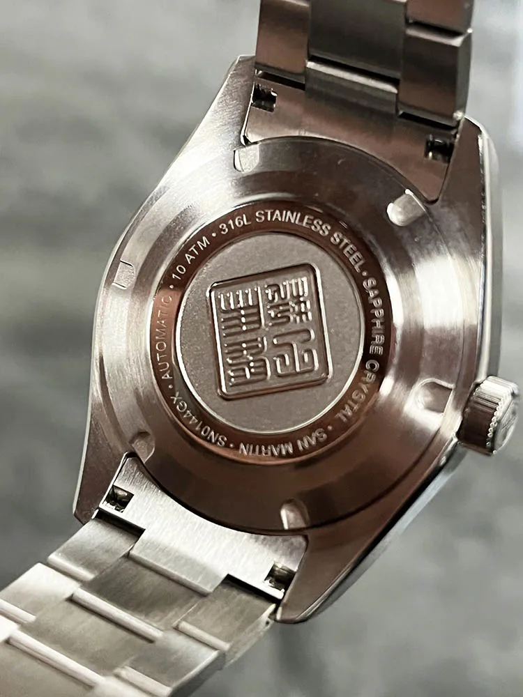 Screw-down Case Back, Engraved with Chinese stamp "Made in San Martin", inspired by the stamp on the bottom of Chinese porcelain "JianZhan".