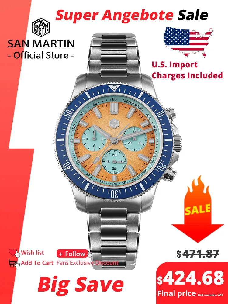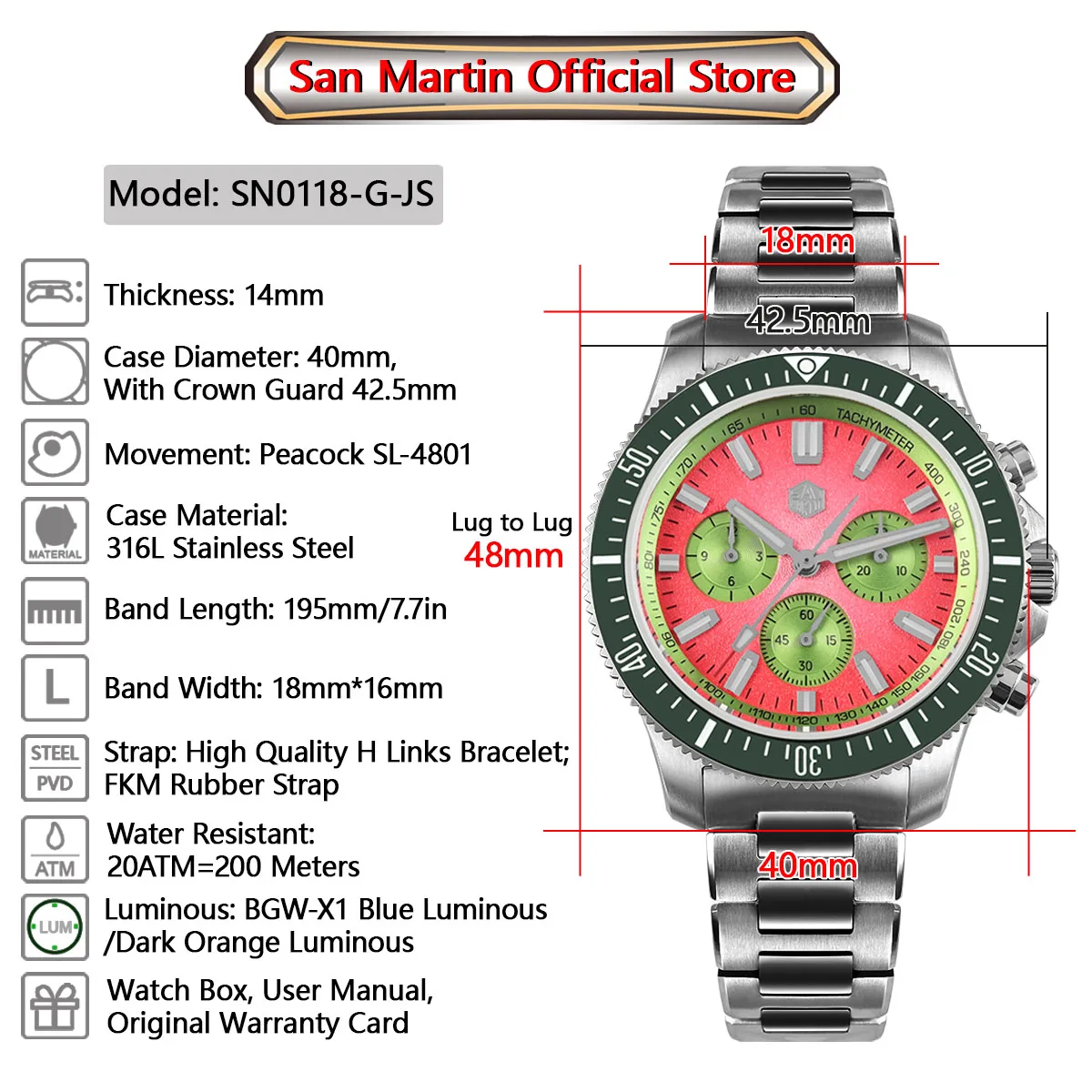 New Luxury Chronograph Watch Peacock SL-4801 Sapphire Crystal Bubble Glass SN0118-G-JS