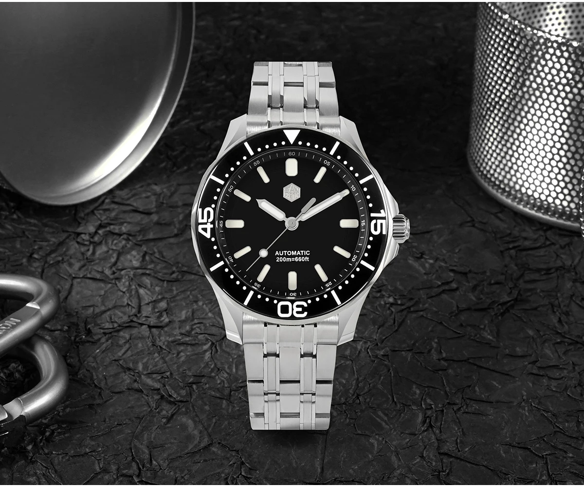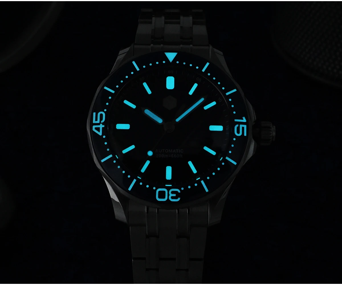 120 Clicks Ceramic Bezel, 12H Luminous Markers