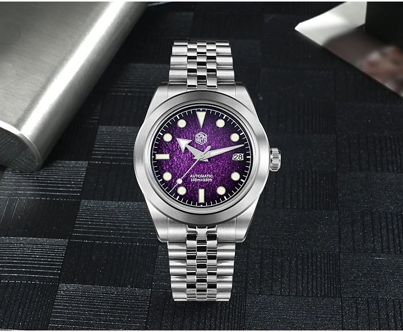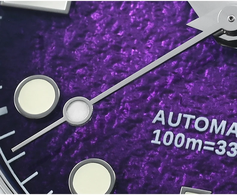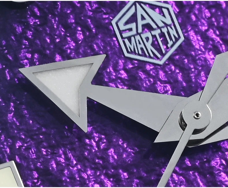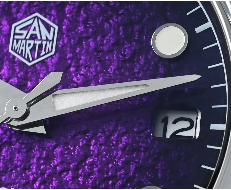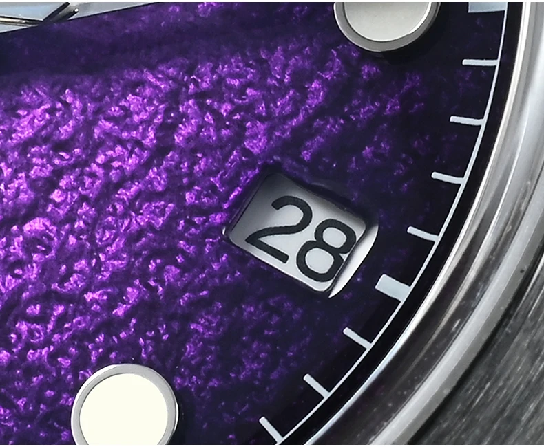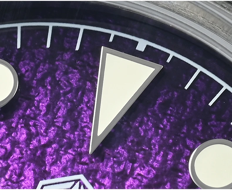 Dial Color: Compression Molding Enamel Dial, Gradient Purple, Gradient Blue, Gradient Black, Sunray Brown, Sunray Blue, Printed Hexagon Logo & Applied Indices