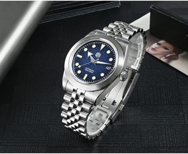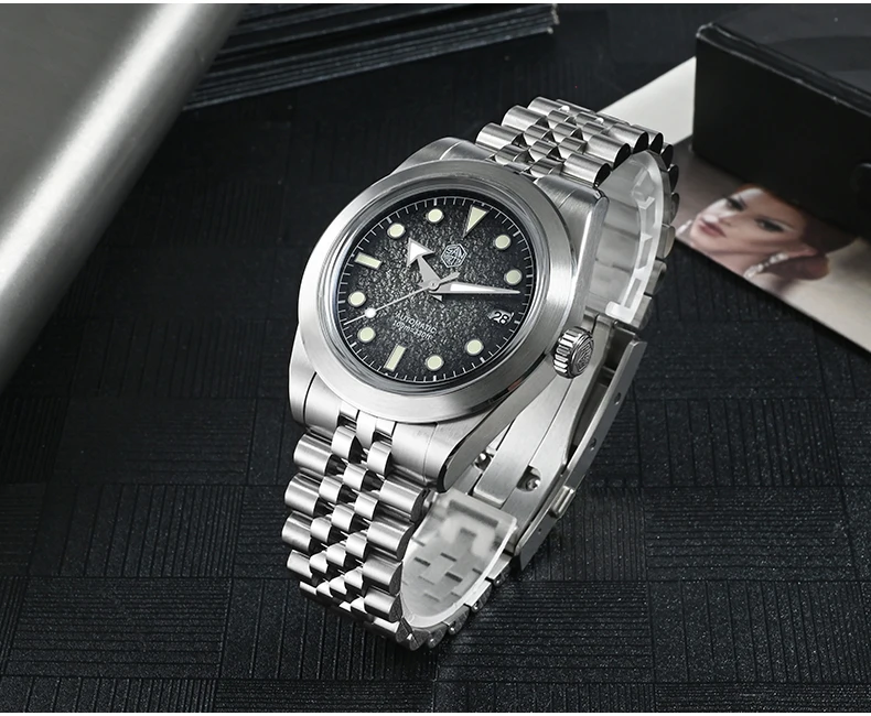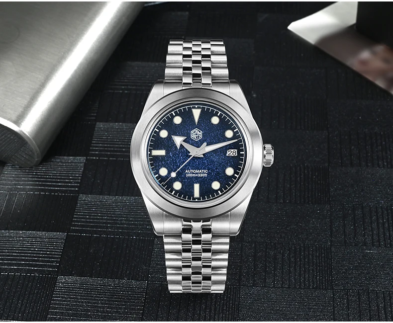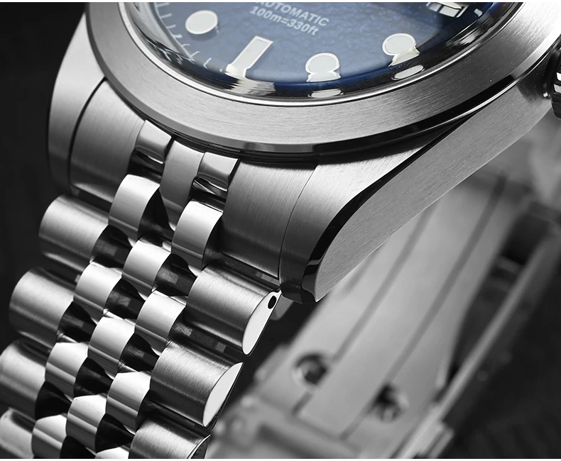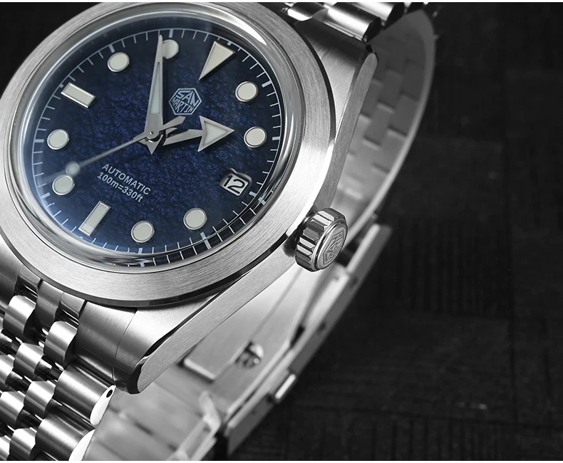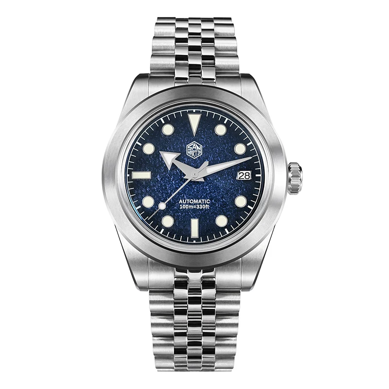 Dial Color: Compression Molding Enamel Dial, Gradient Purple, Gradient Blue, Gradient Black, Sunray Brown, Sunray Blue, Printed Hexagon Logo & Applied Indices