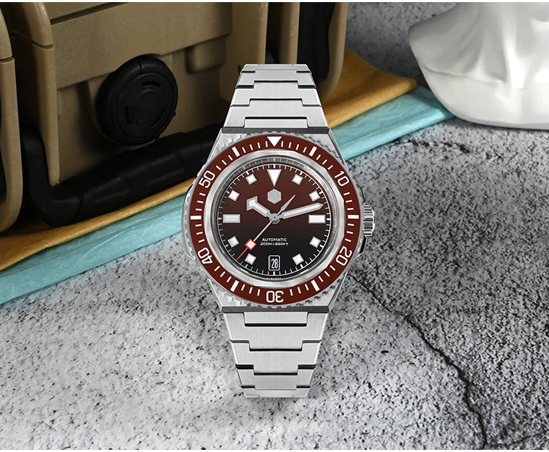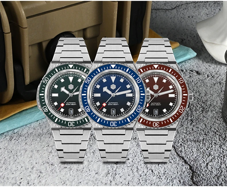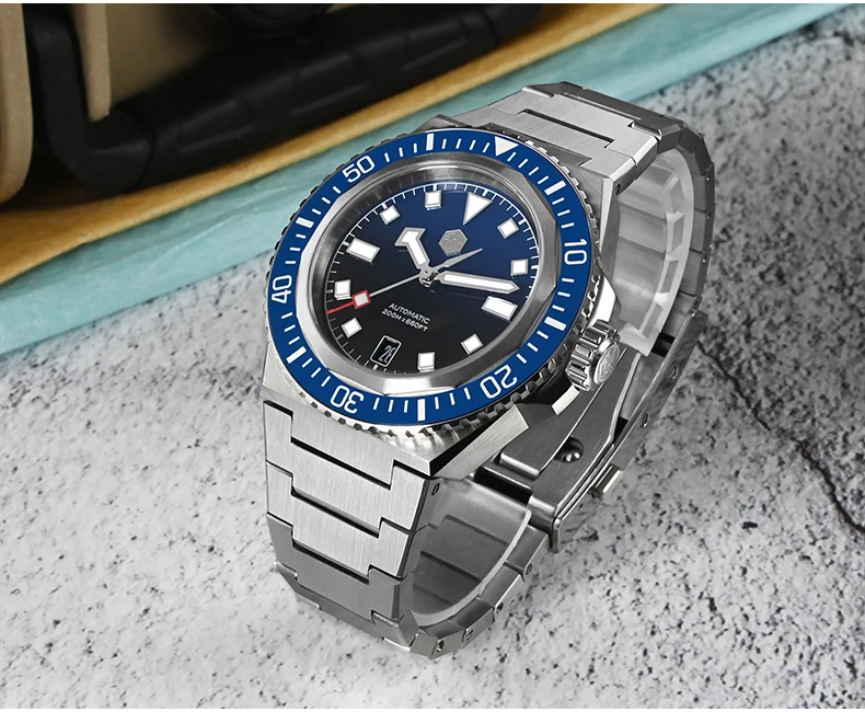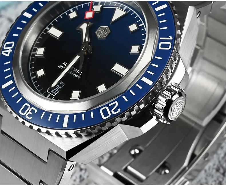 San Martin Men Automatic Watch 41mm Mechanical Wristwatch Sapphire Diver 200M Waterproof BGW-X1 Luminous NH35 Ceramic Bezel