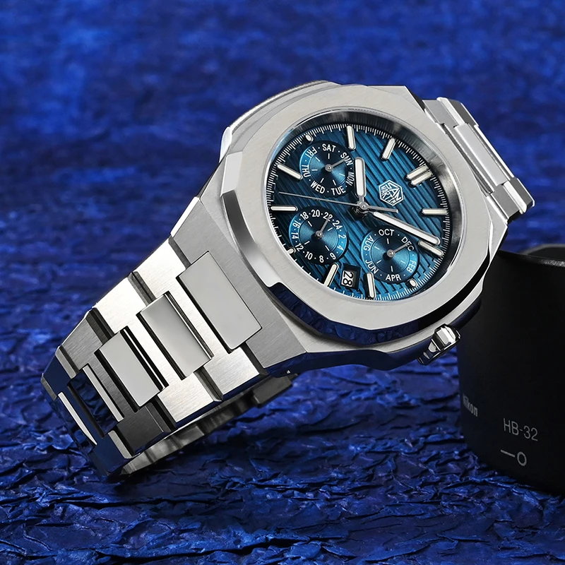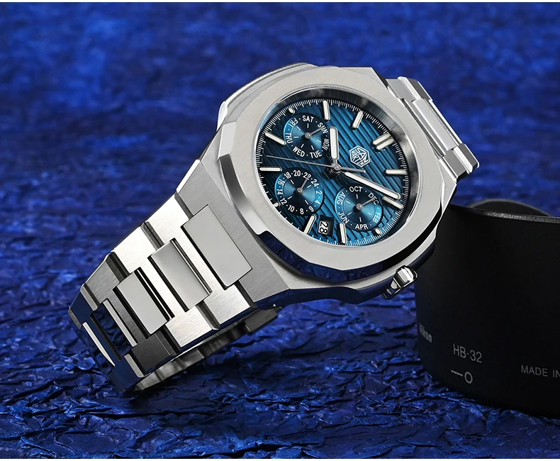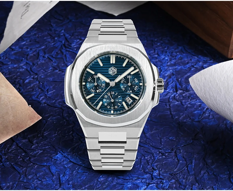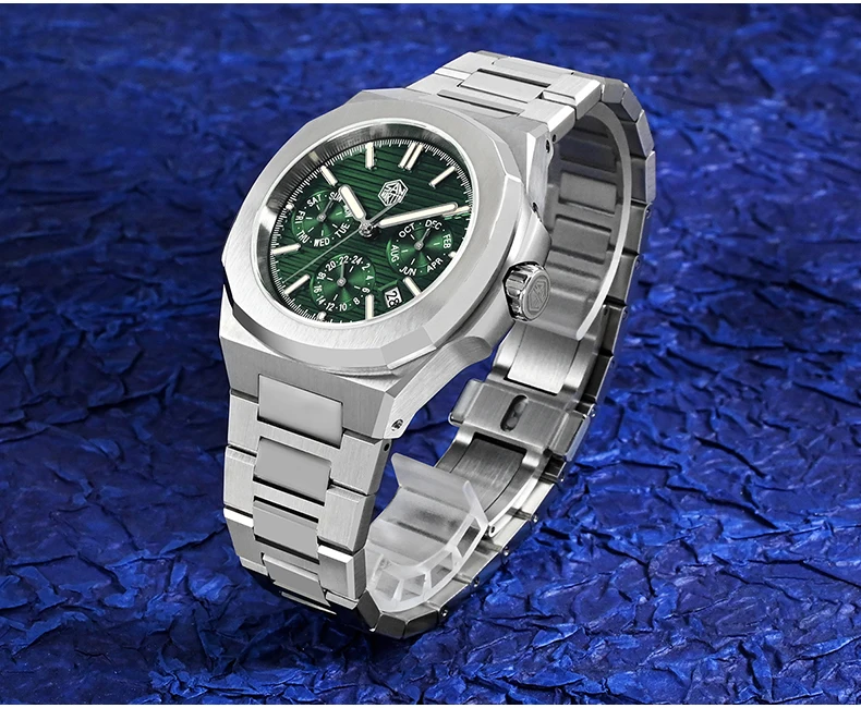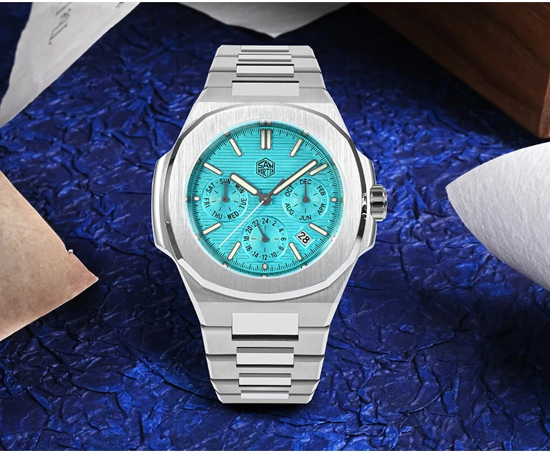 Dial Color: Sunray Green/Sunray Blue/Sunray Light Blue, Printed Hexagon Logo,Horizontal Stripes