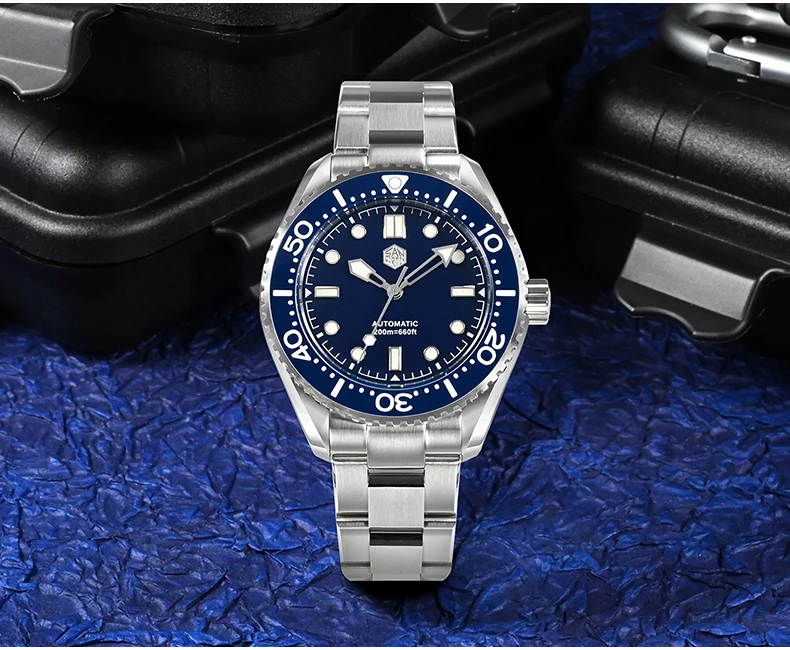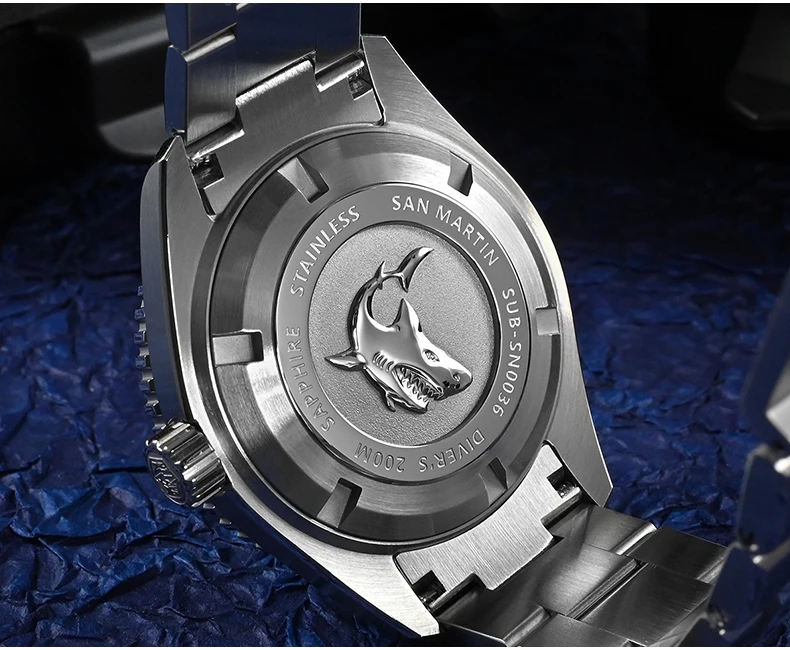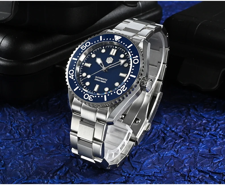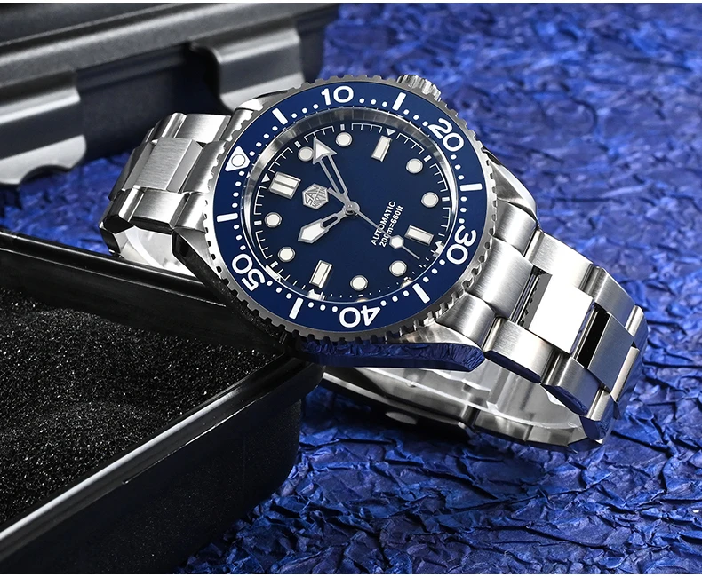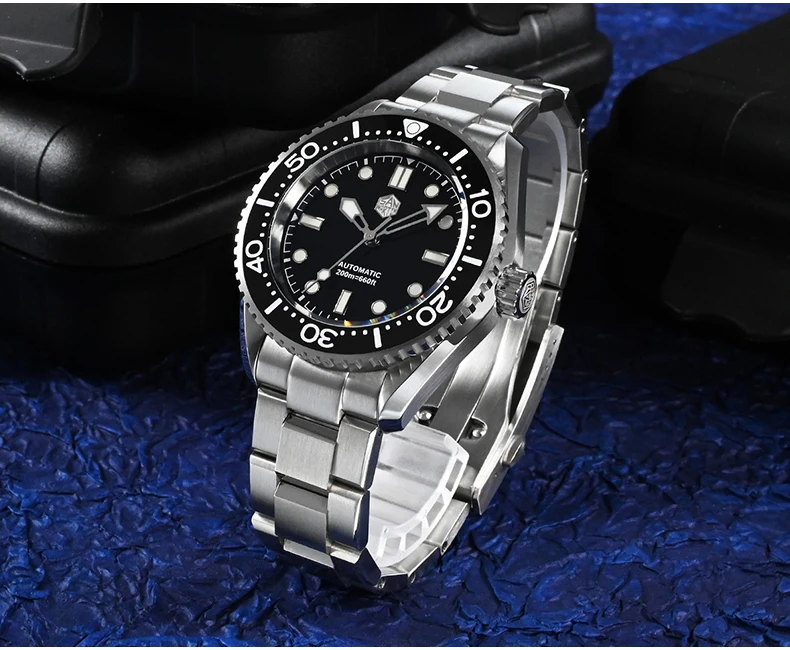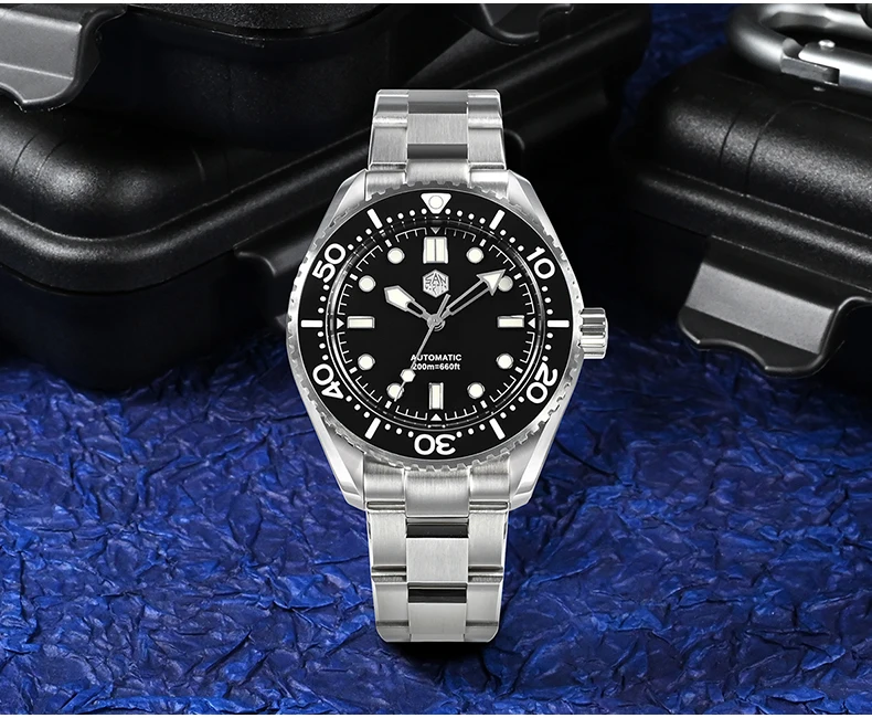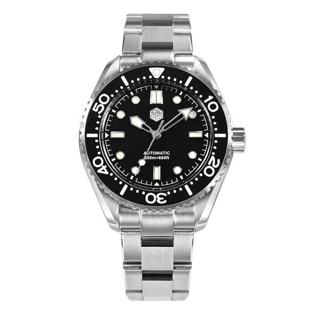 San Martin Men Diver Watch Luxury Automatic Mechanical Wristwatch Sapphire 200M Waterproof Luminous Ceramic Bezel Steel Strap