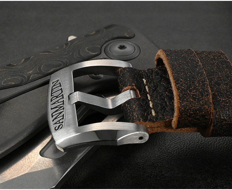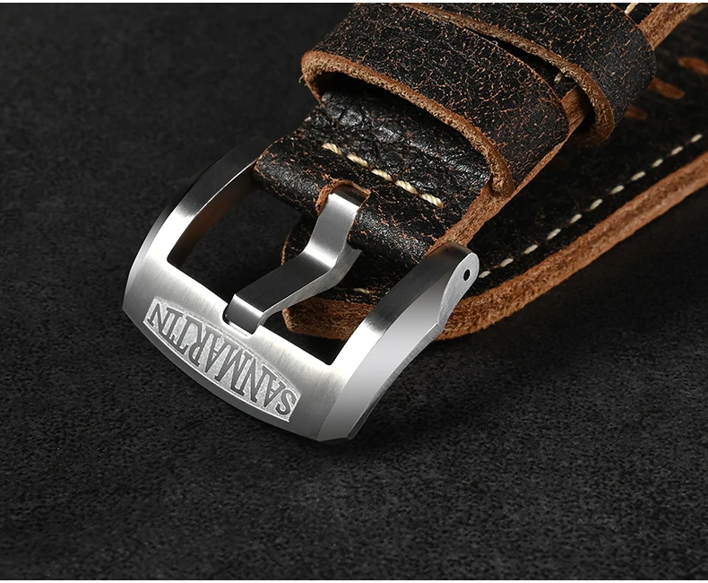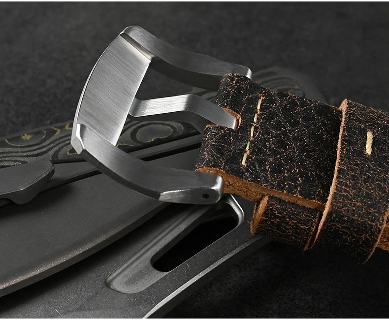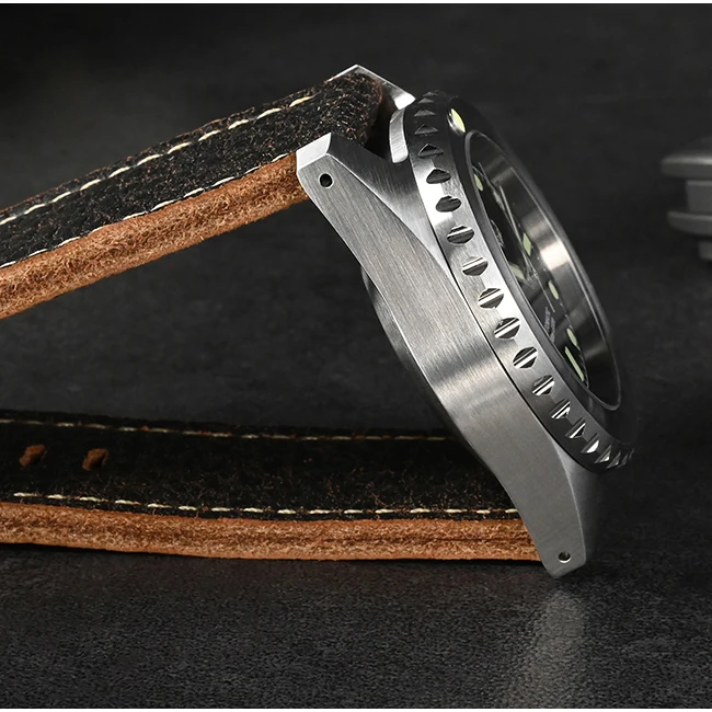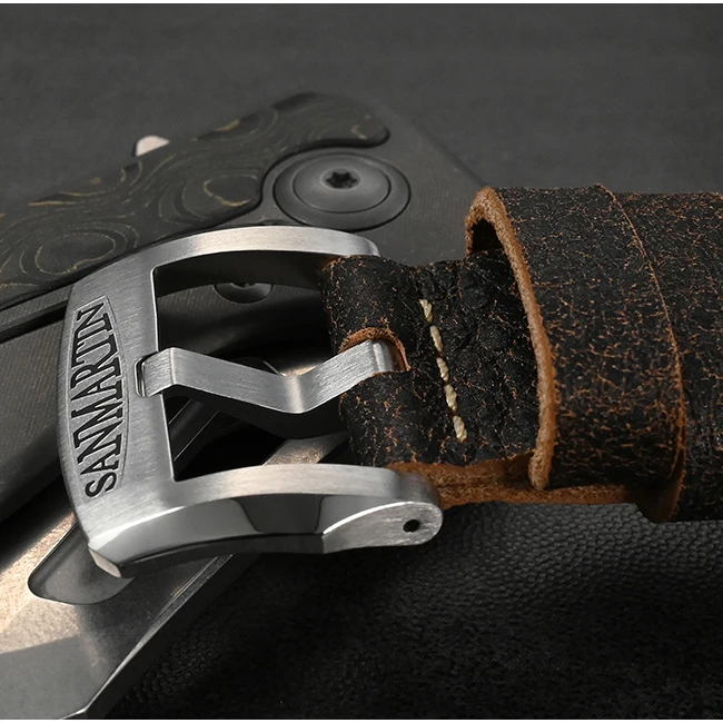 Strap Material: 316L Solid Stainless Steel Bracelet/ Quick Release Burst Textured Cowhide Leather Strap