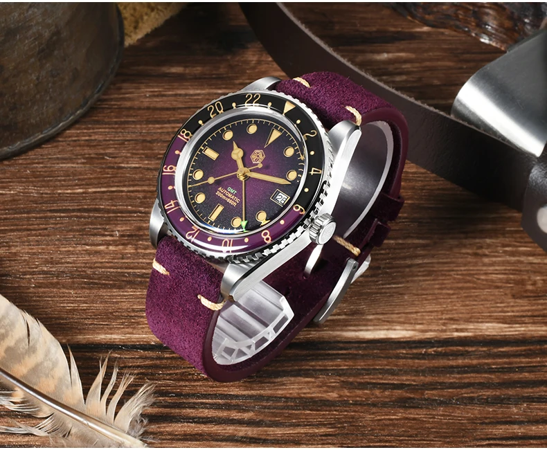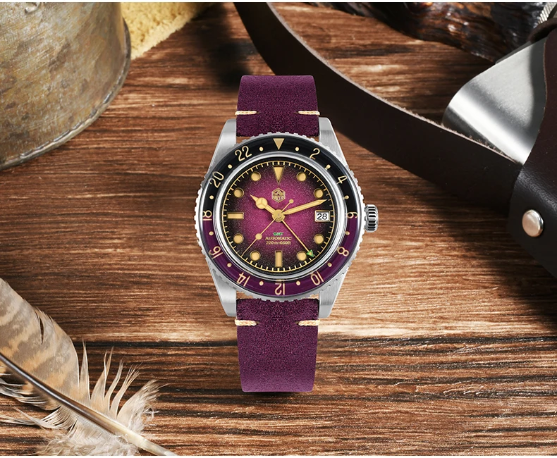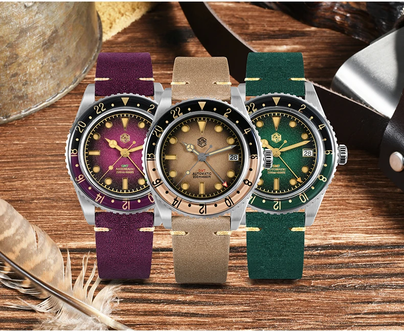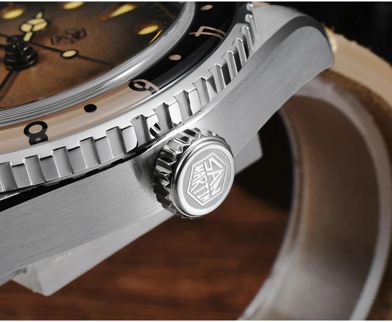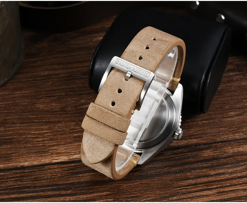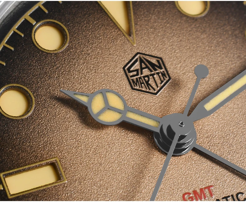 Dial Color: Brown/Purple/Green Sandwich Dial, With Printed SAN MARTIN Logo & Date Window