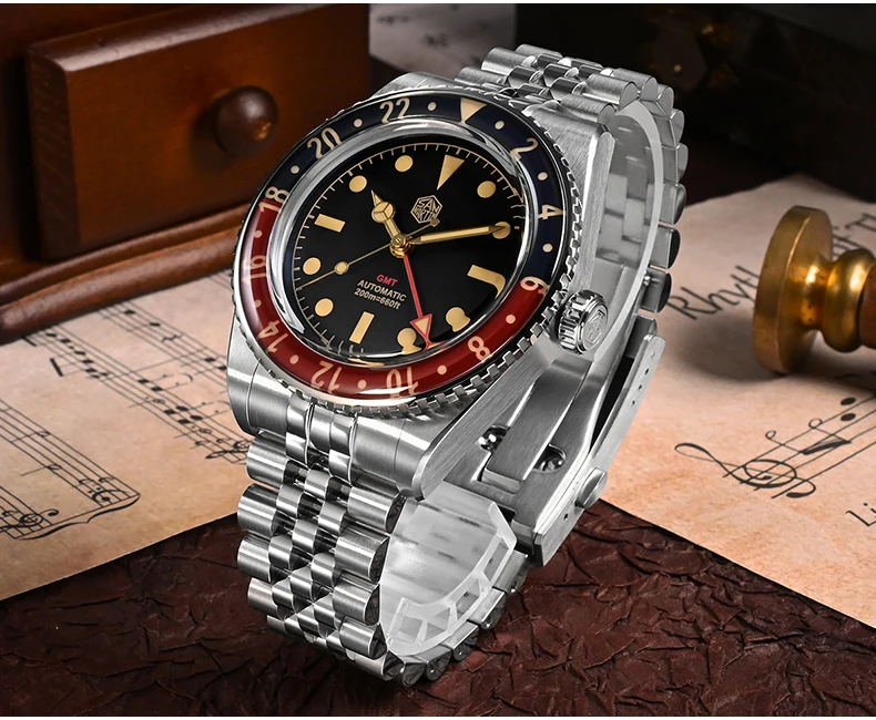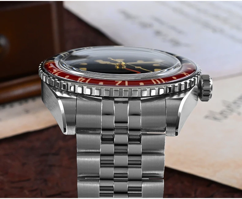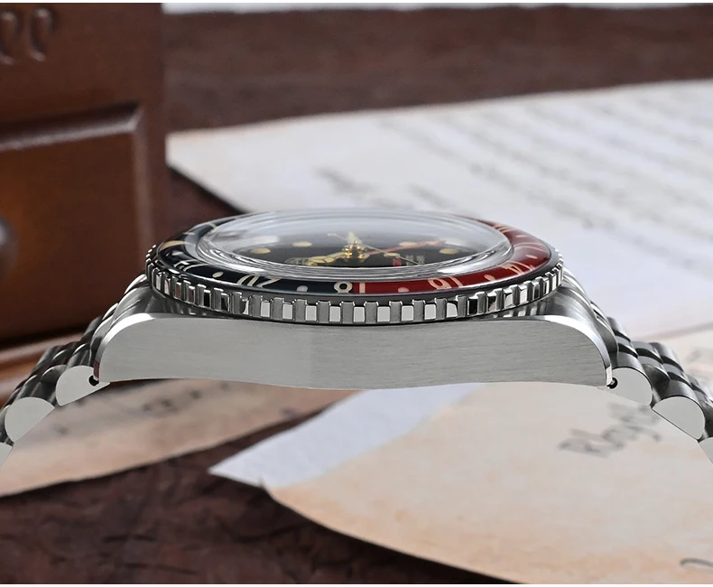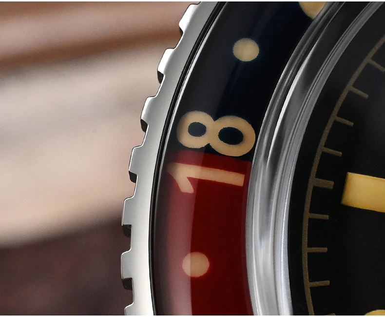 8,Bezel:Bidirectional 24 Clicks Bezel, Vintage Red & Blue Sapphire Bezel With Full Luminous