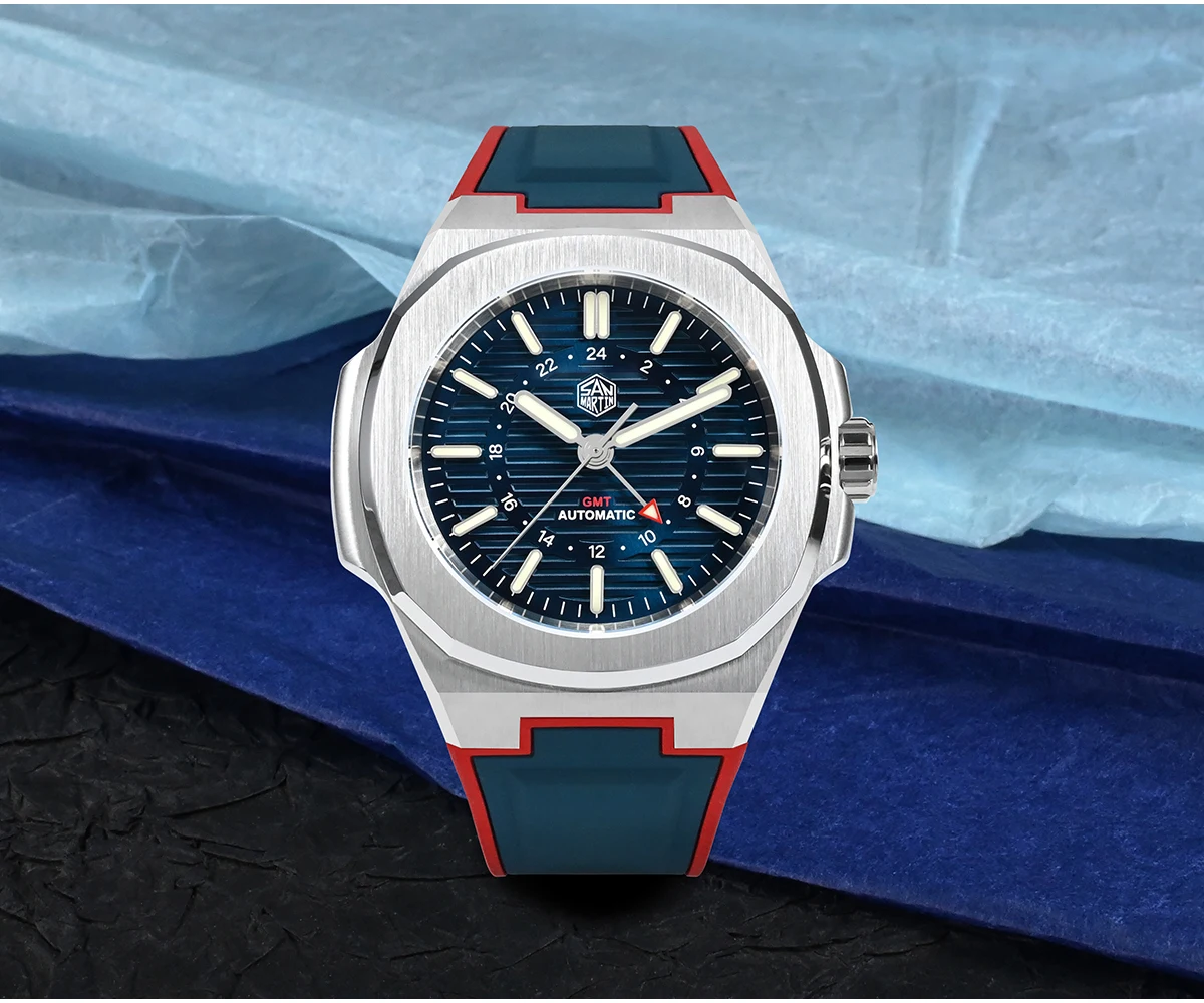 Strap: Solid 316L Stainless Steel Bracelet ,24mm*18mm/Two-Tone FKM (Fluorine Kautschuk Materia) Rubber Strap