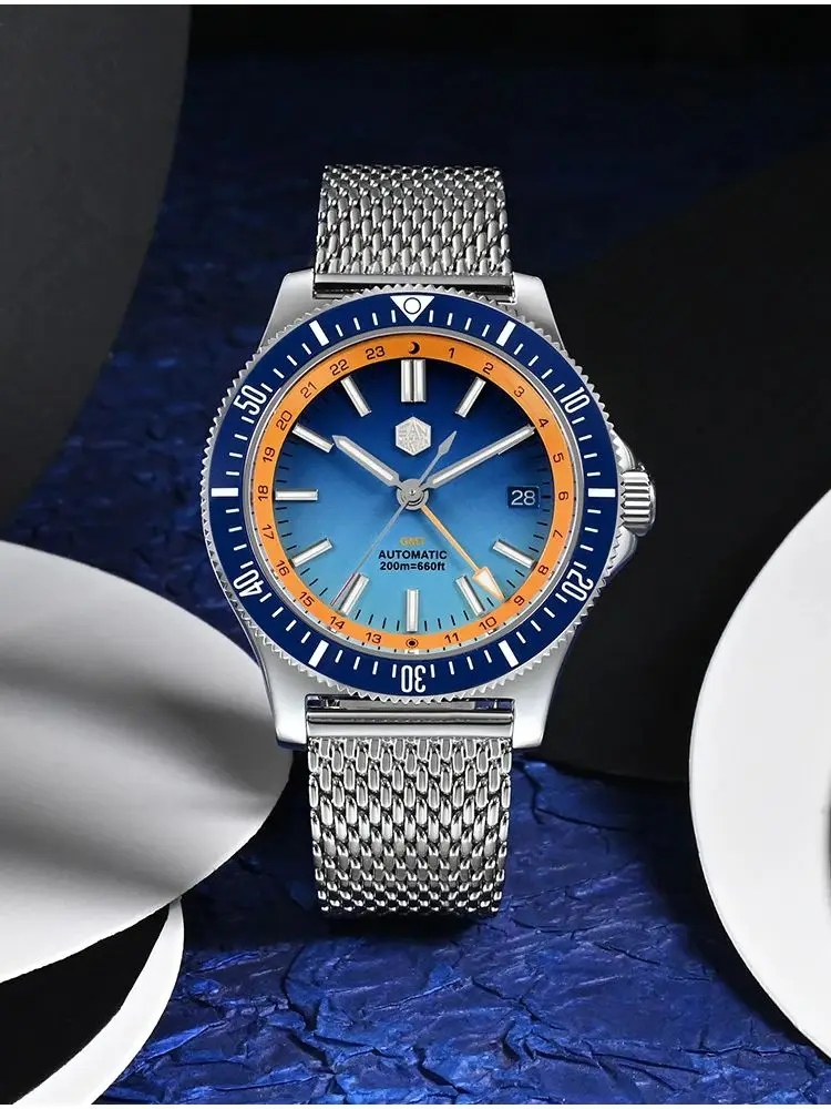 Dial: Enamel Gradient Gray / Enamel Gradient Green / Enamel Gradient Blue Color, With Applied Hexagon San Martin Logo And Applied Indices, 3H Date Window