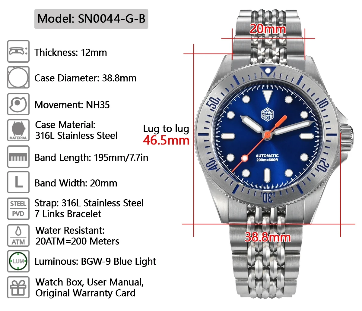 Bezel: 120 Clicks Unidirectional, 316L Stainless Steel Bezel, 12 O’clock Luminous Markers