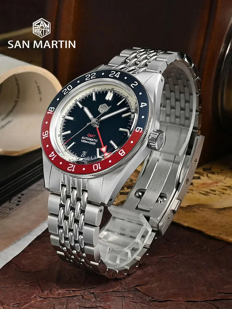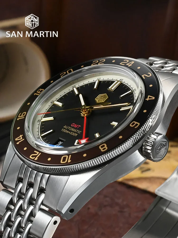 San Martin 39.5mm Men Watch NH34 GMT Bidirectional Aluminum Bezel Watches Automatic Mechanical Sapphire Luminous Waterproof 10Bar