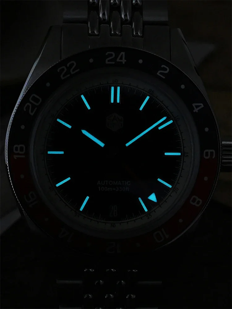 New NH34 GMT Luxury Men’s Watch, Bidirectional Aluminum Bezel