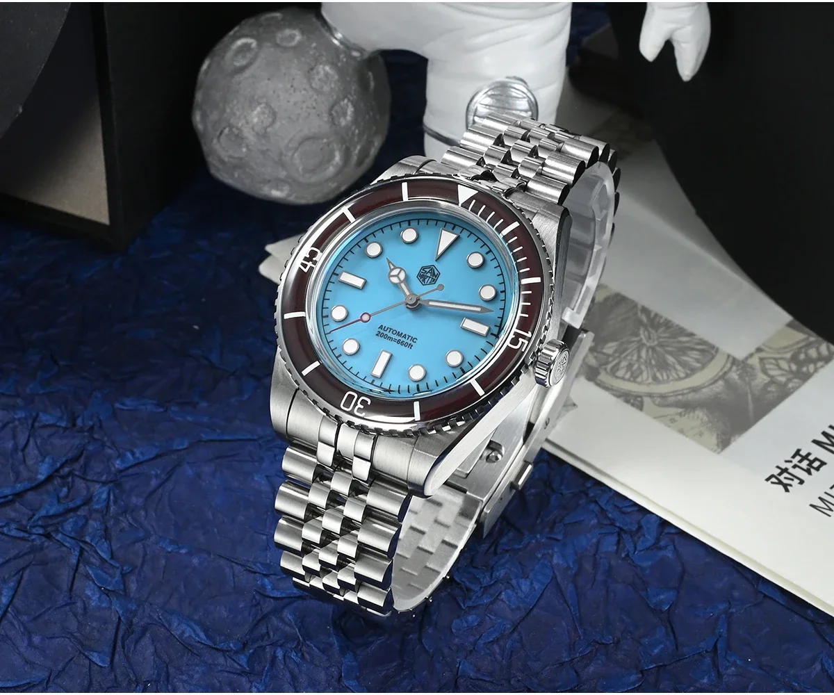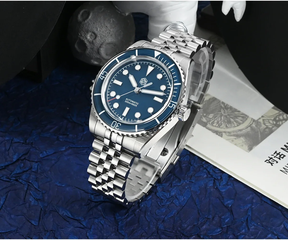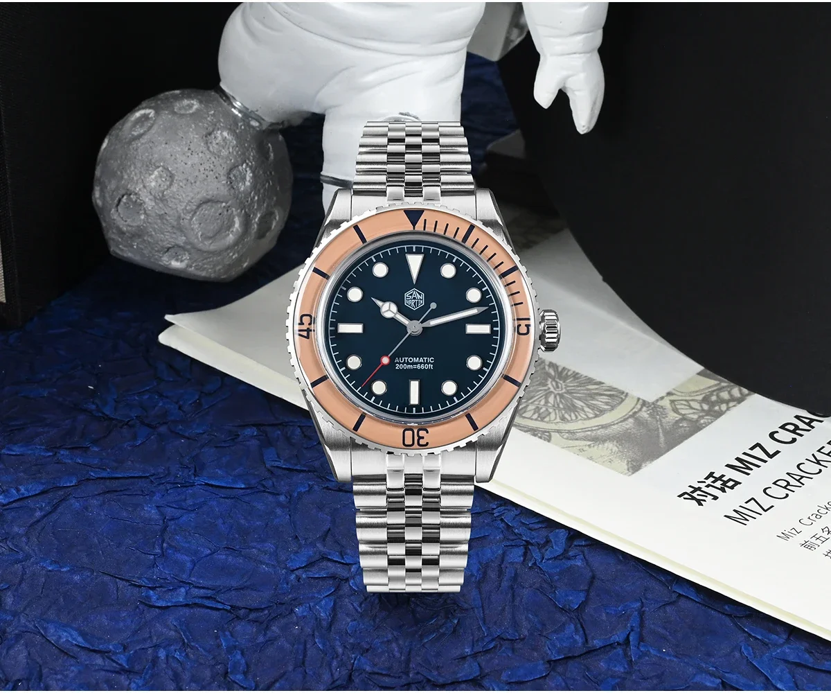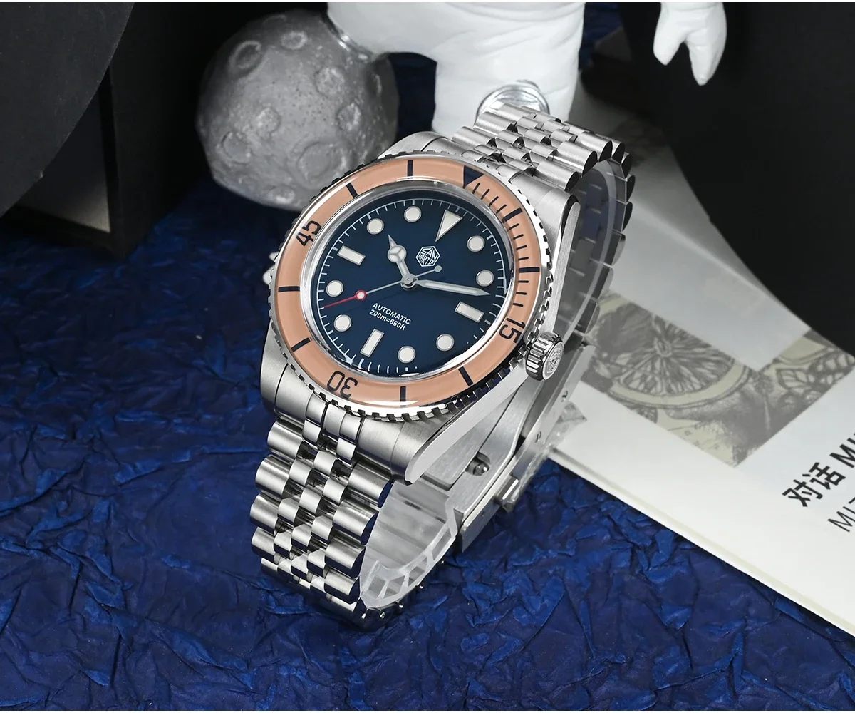 New 40mm Vintage Luxury Men Dive Watch Sapphire Bezel J-type Bracelet SN0133-G