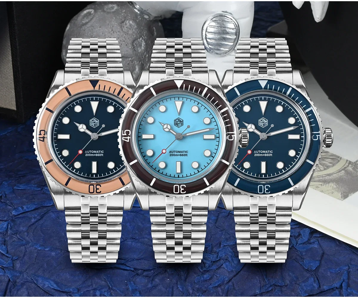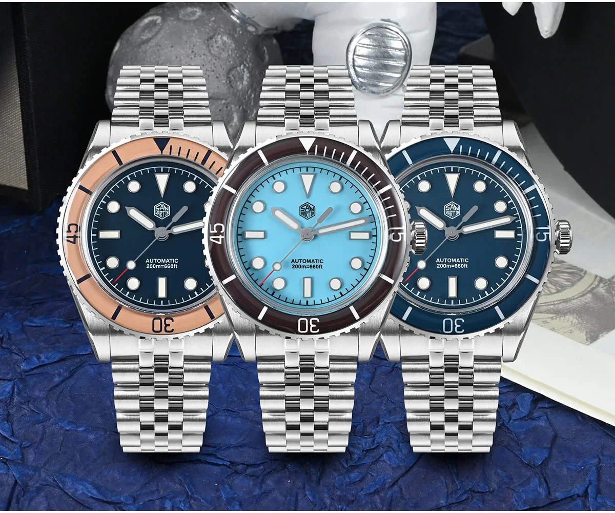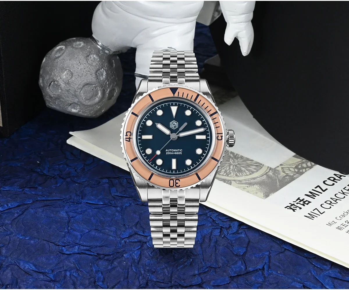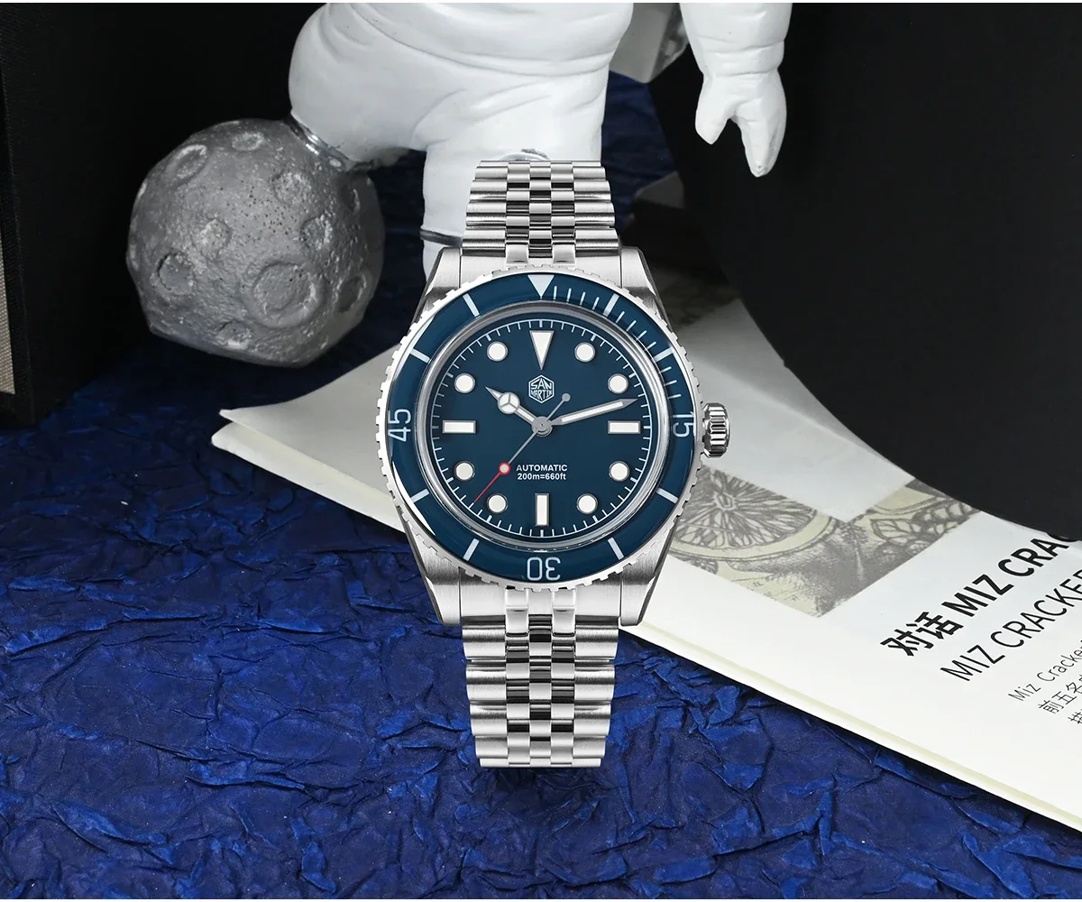 New 40mm Vintage Luxury Men Dive Watch Sapphire Bezel J-type Bracelet SN0133-G