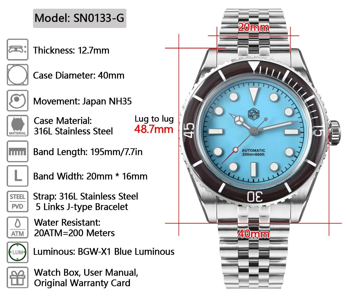 Luminous: Full Luminous Effect, BGW-X1 Blue Luminous, Bezel and Hands and Markers